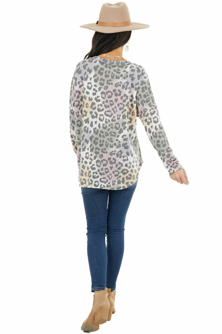 - Multicolor Tie Dye and Leopard Print Long Sleeve Knit Top