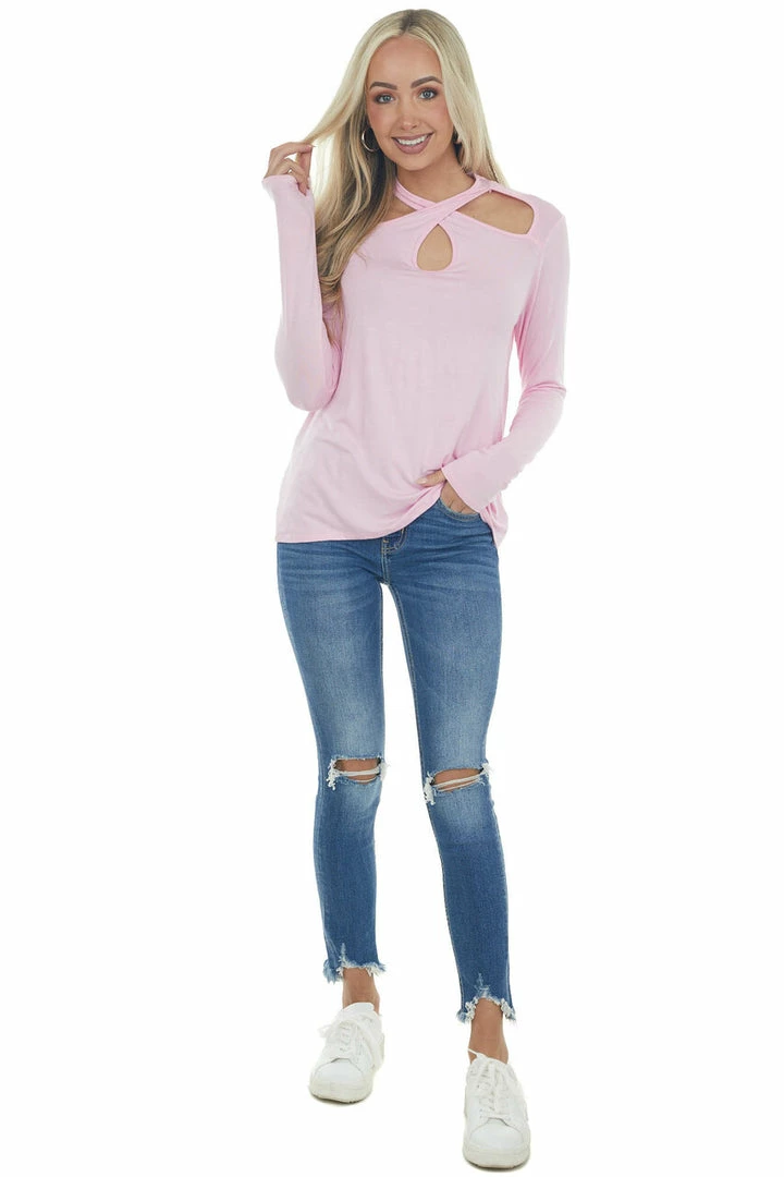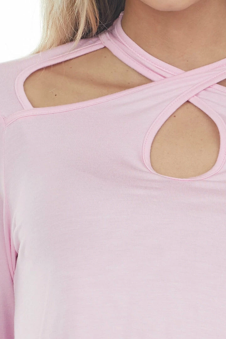 - Baby Pink Criss Cross Front Cut Out Knit Top
