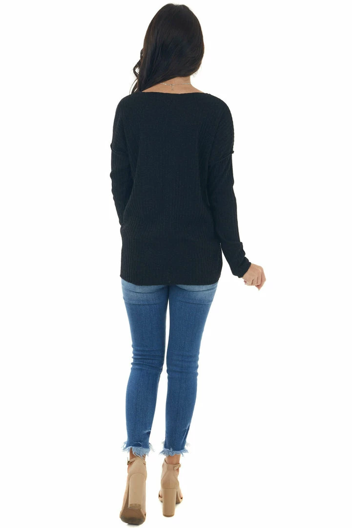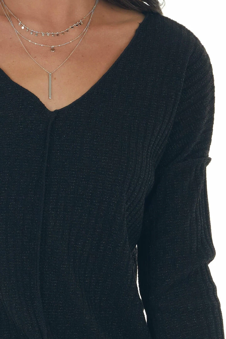 - Black Metallic Thread Exposed Seam Knit Top