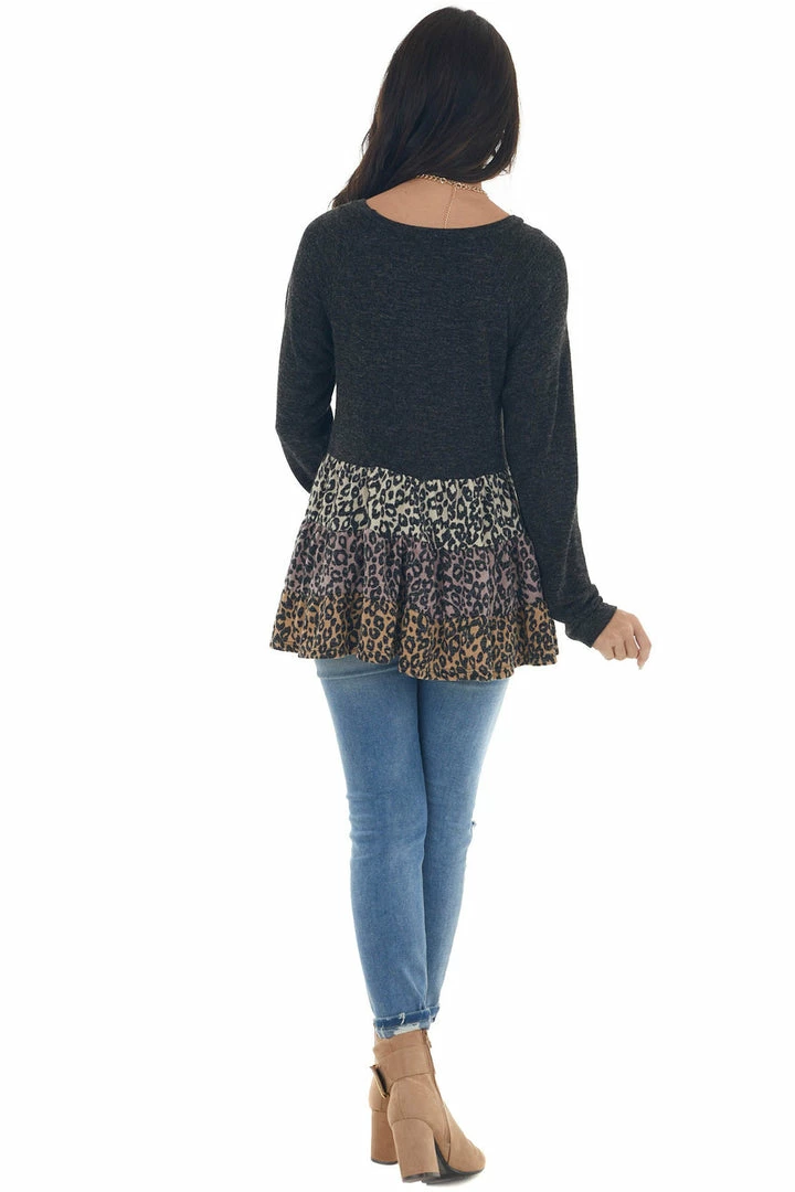 - Charcoal colorblock leopard print stretchy knit self