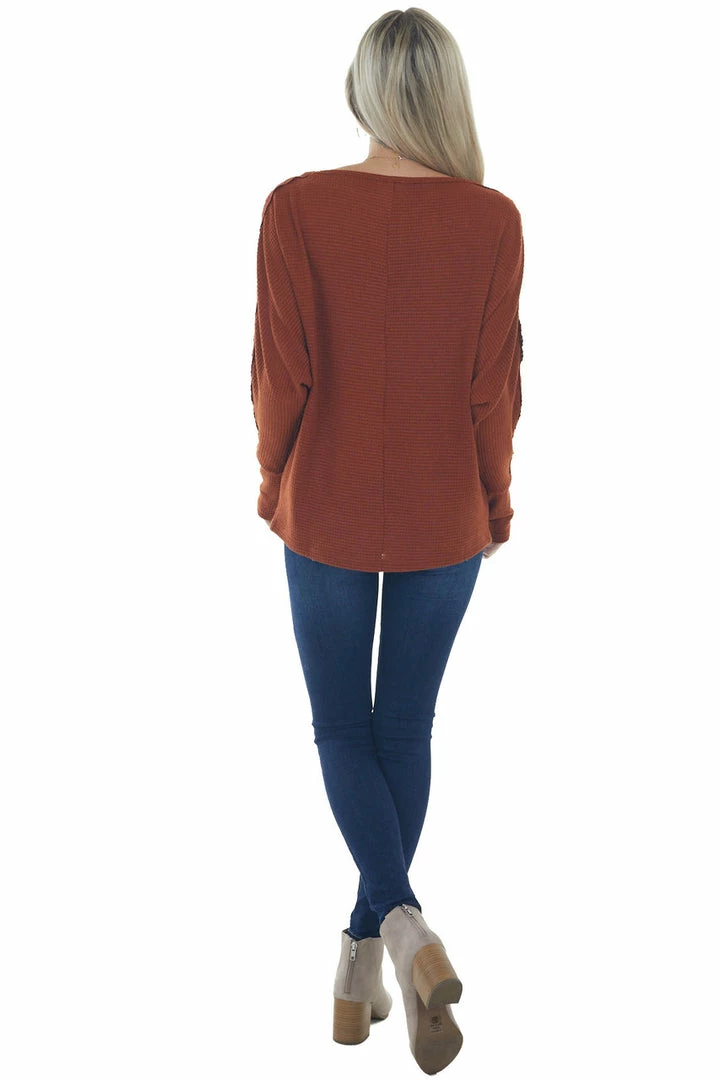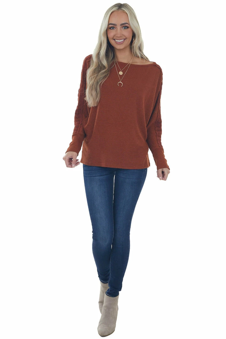 - Cinnamon Waffle Knit Dolman Lace Sleeve Top