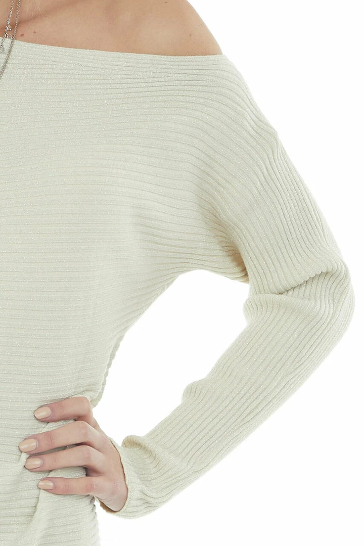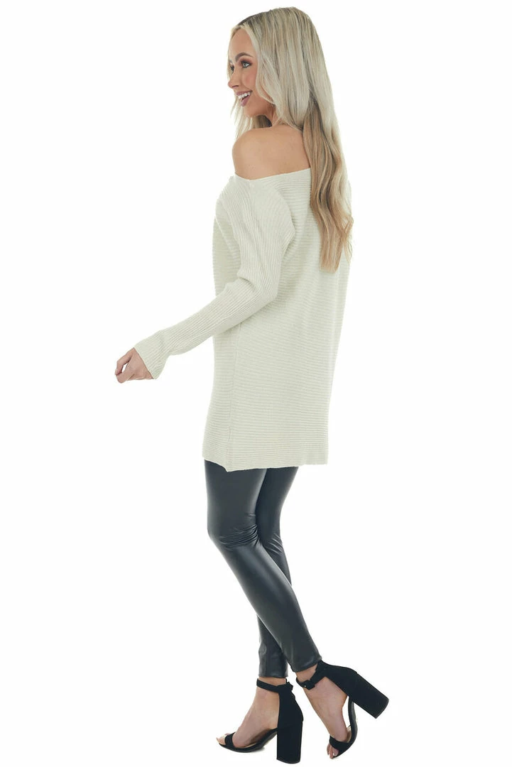 - Cream Ribbed Knit Asymmetrical Boat Neck Top