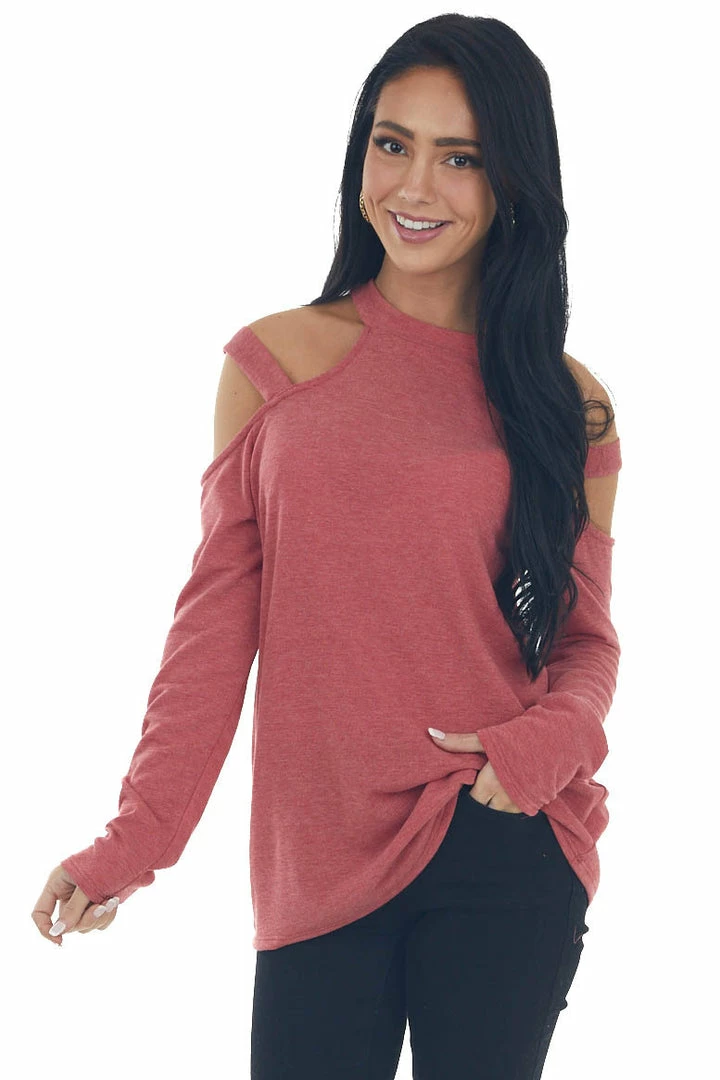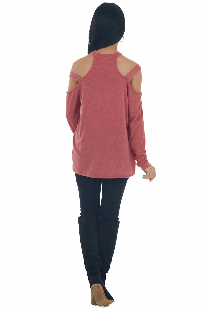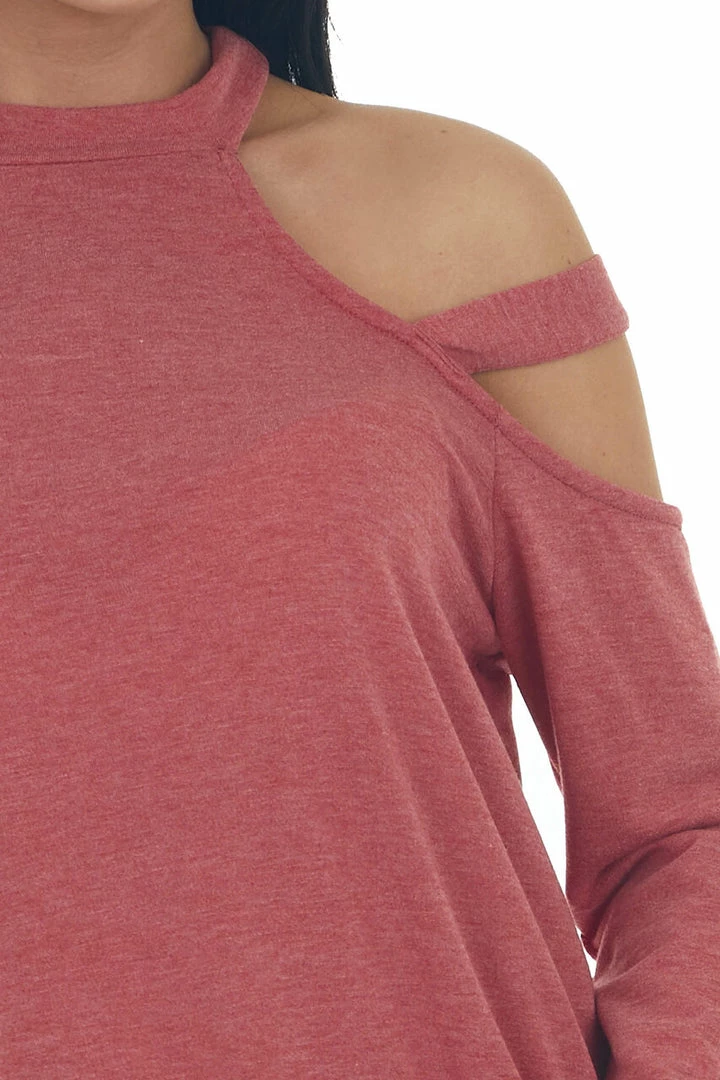 - Crimson Cold Shoulder Mock Neck Knit Top