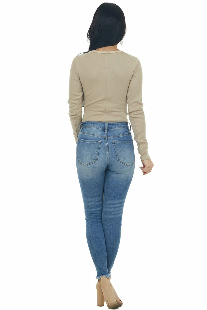 - Dark Khaki Henley Zipper Long Sleeve Bodysuit