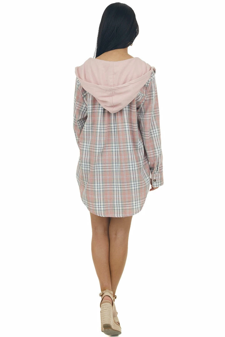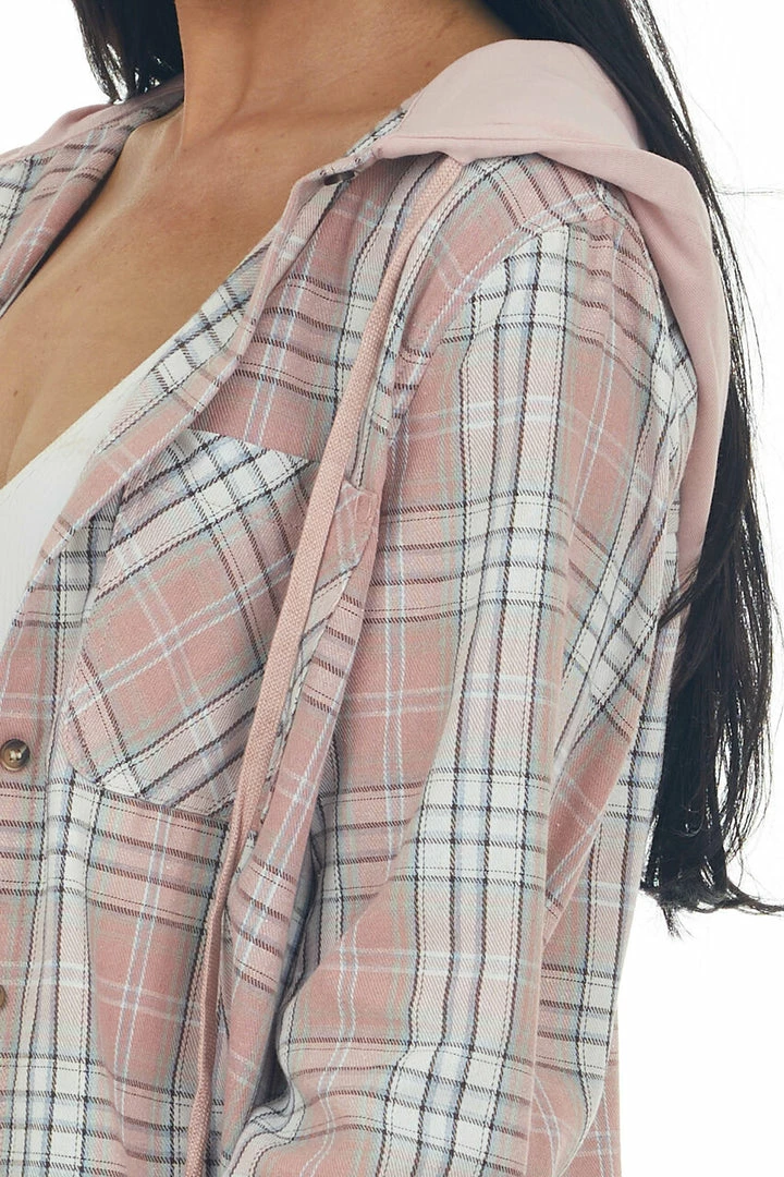 - Dusty Blush Plaid Button Up Hoodie Shacket