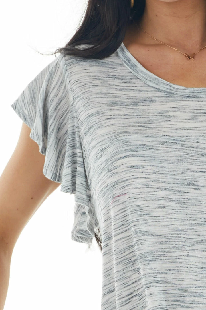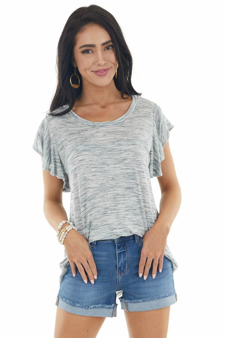 - Heather Grey and Charcoal Knit Top with Flutter Sleeves