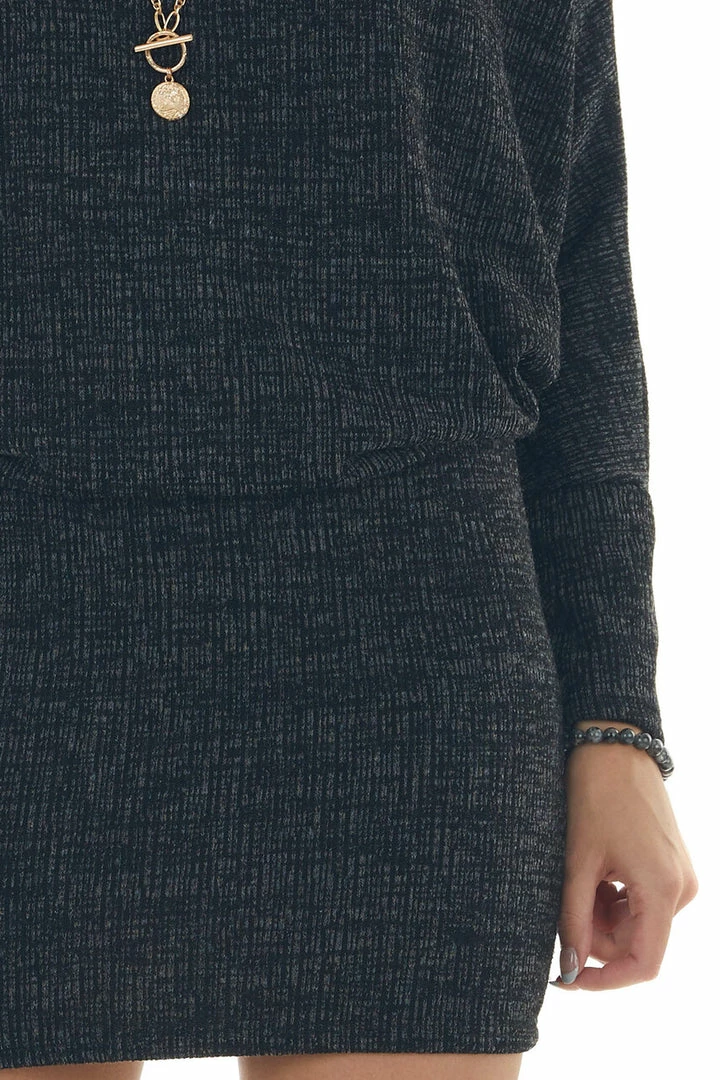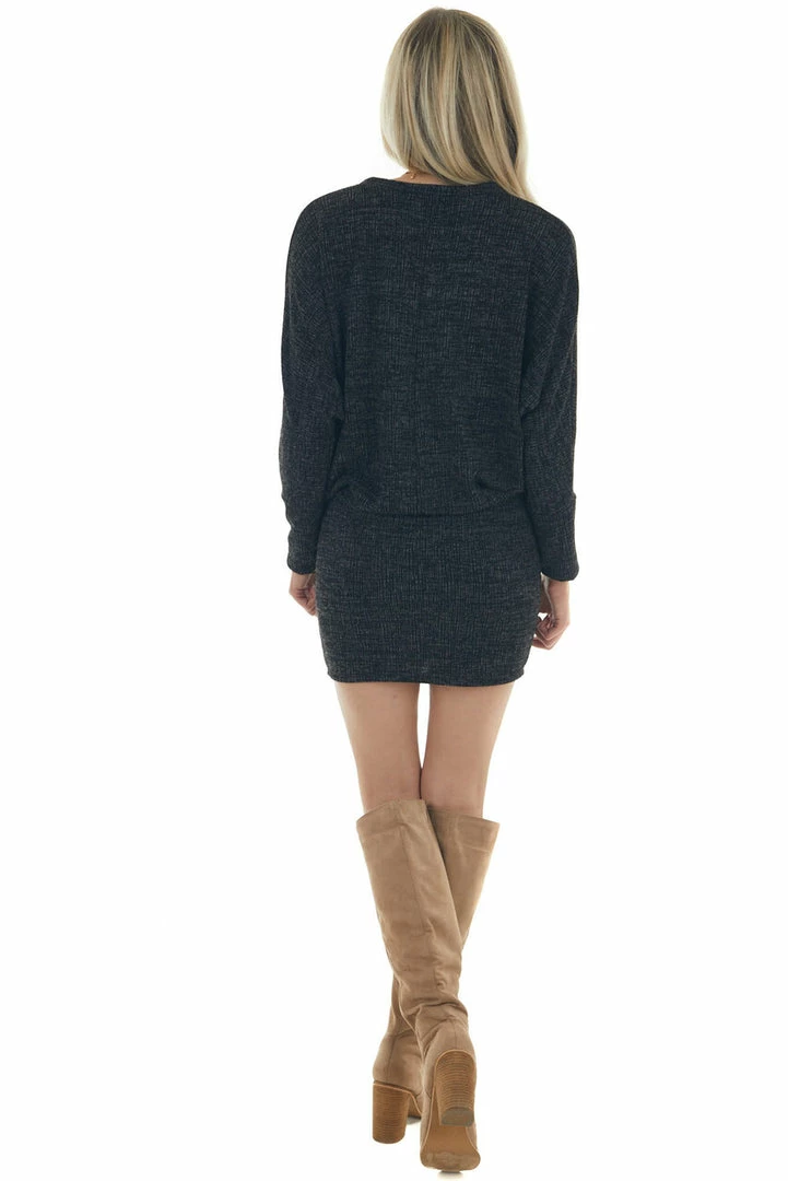 - Heathered Black Blouson Sweater Dress