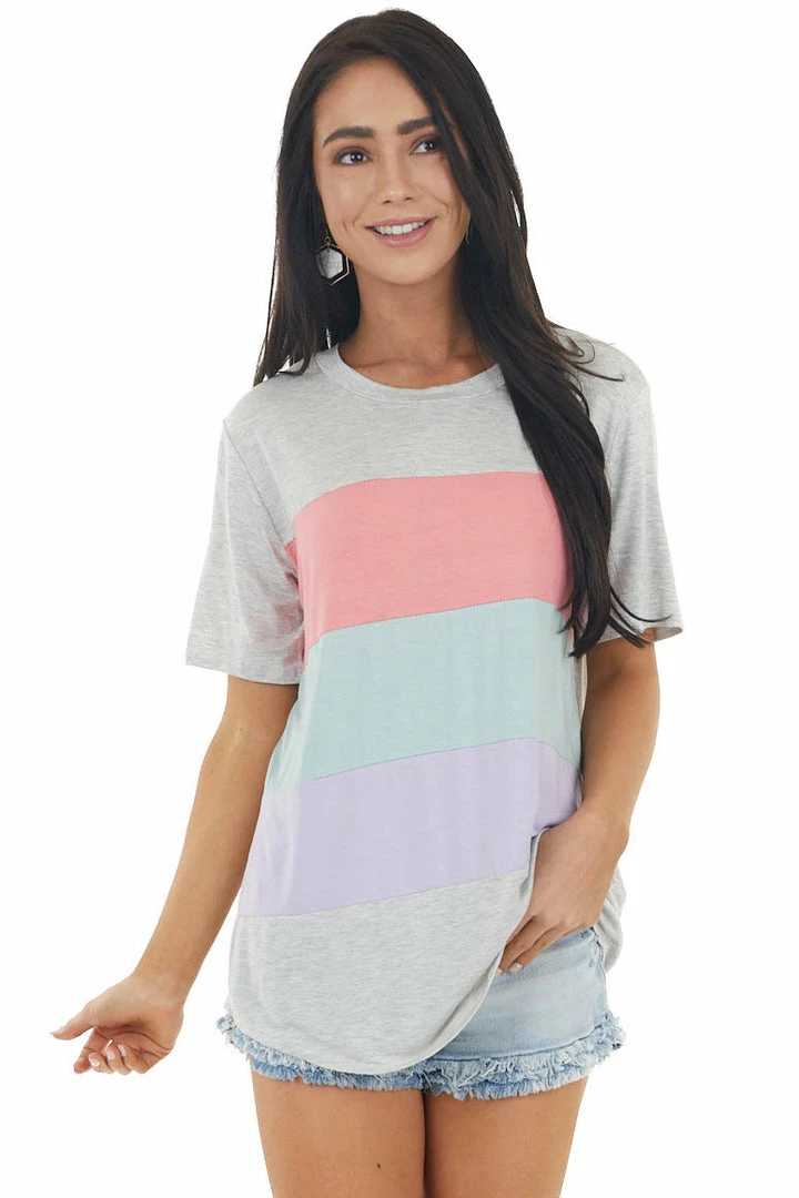 - Heathered Dove Colorblock Knit Top with Short Sleeves