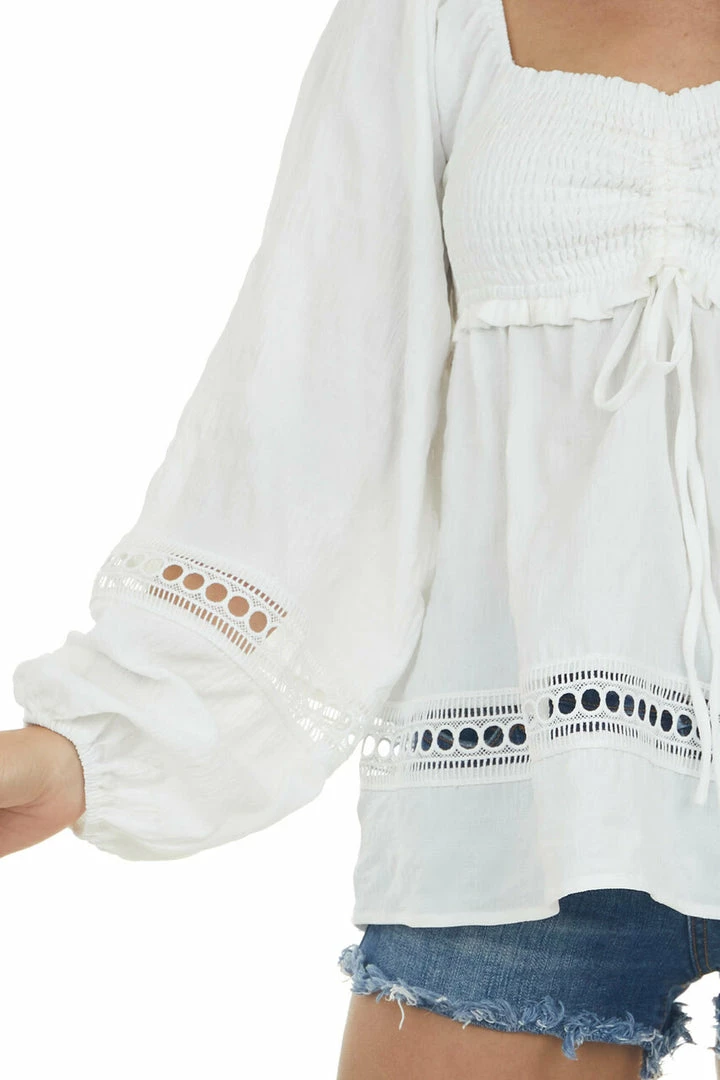 - Ivory Smocked Bust Lace Detailed Blouse