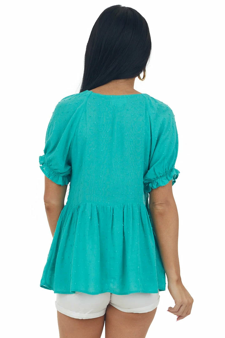 - Jungle Green Swiss Dot Smocked Babydoll Flowy Top