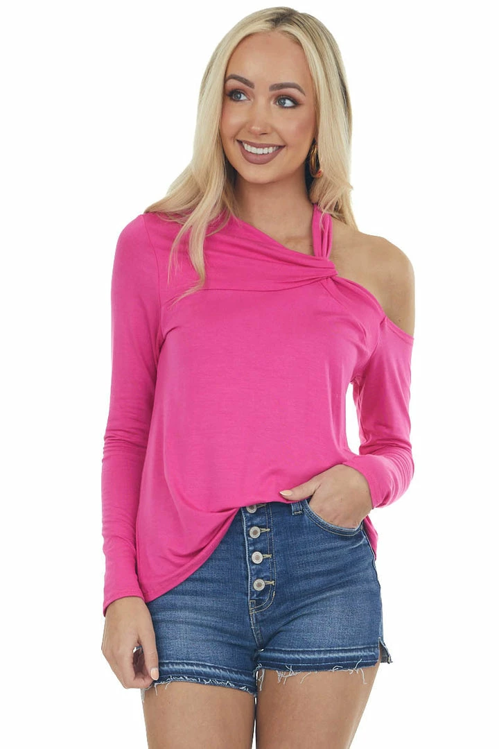 - Magenta Cold Shoulder Long Sleeve Knit Top