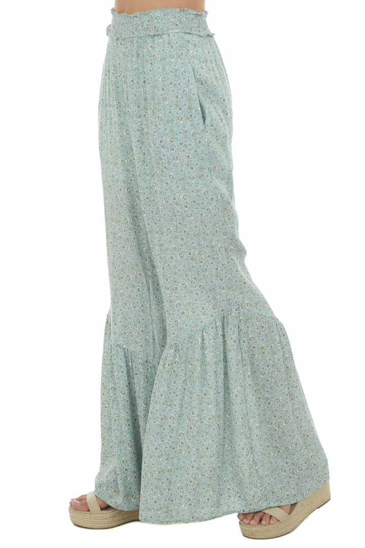- Mint Floral Print Ruffle Hem Wide Leg Pants