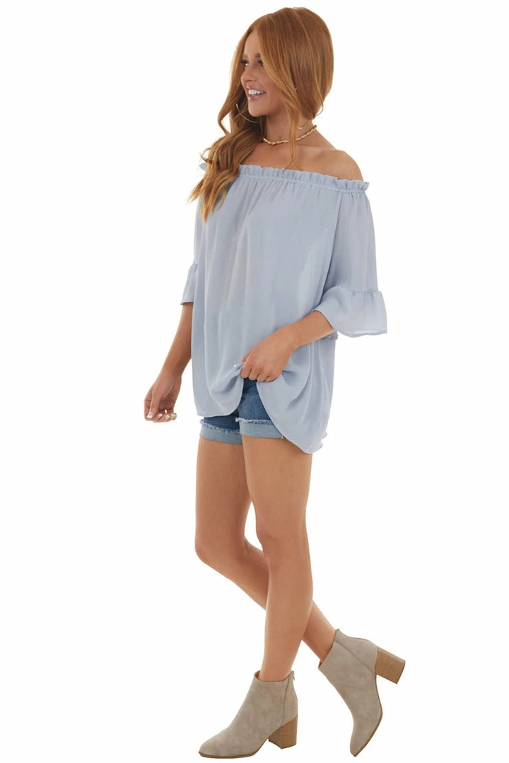 - Powder Blue Off the Shoulder Ruffle Blouse