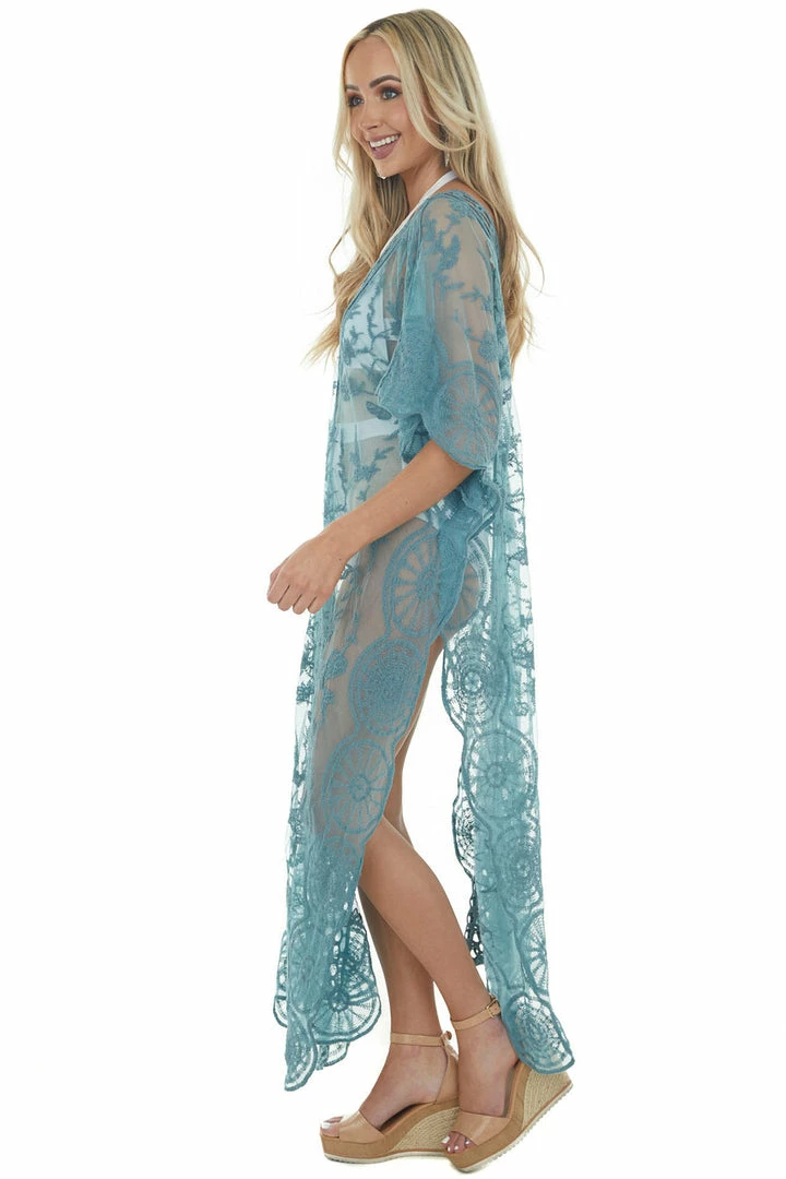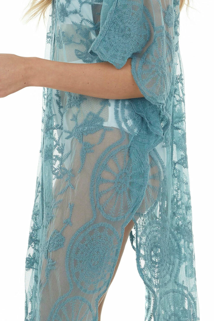 - Sea Blue Crochet Detail Side Slit Mesh Cover Up