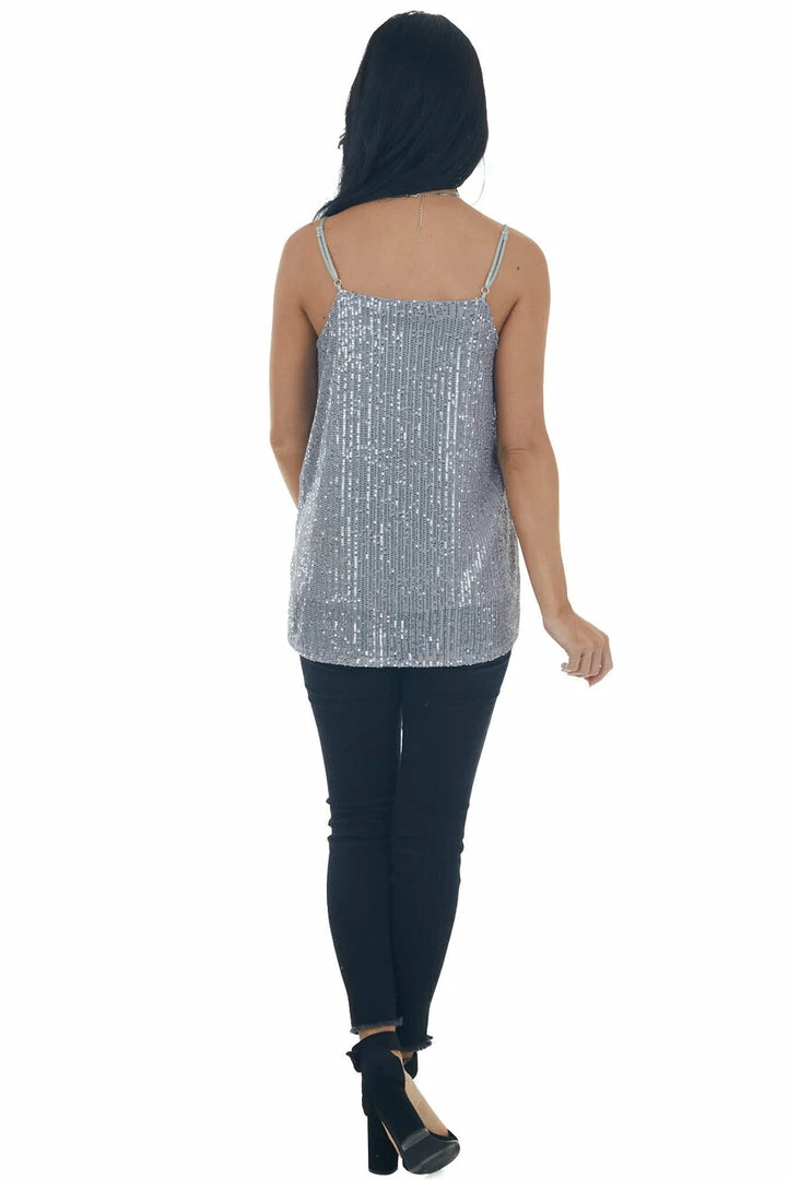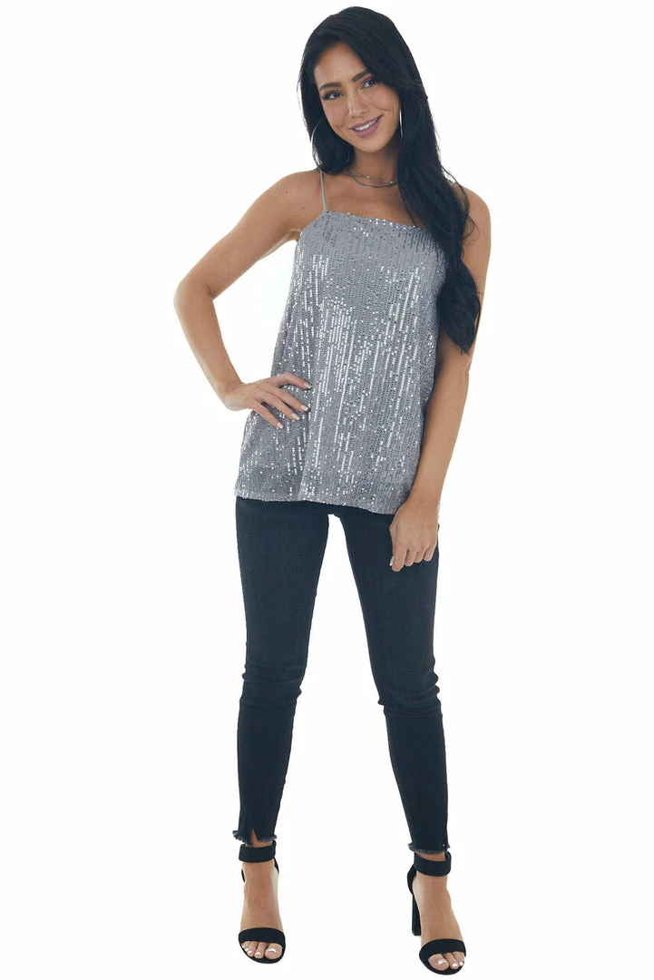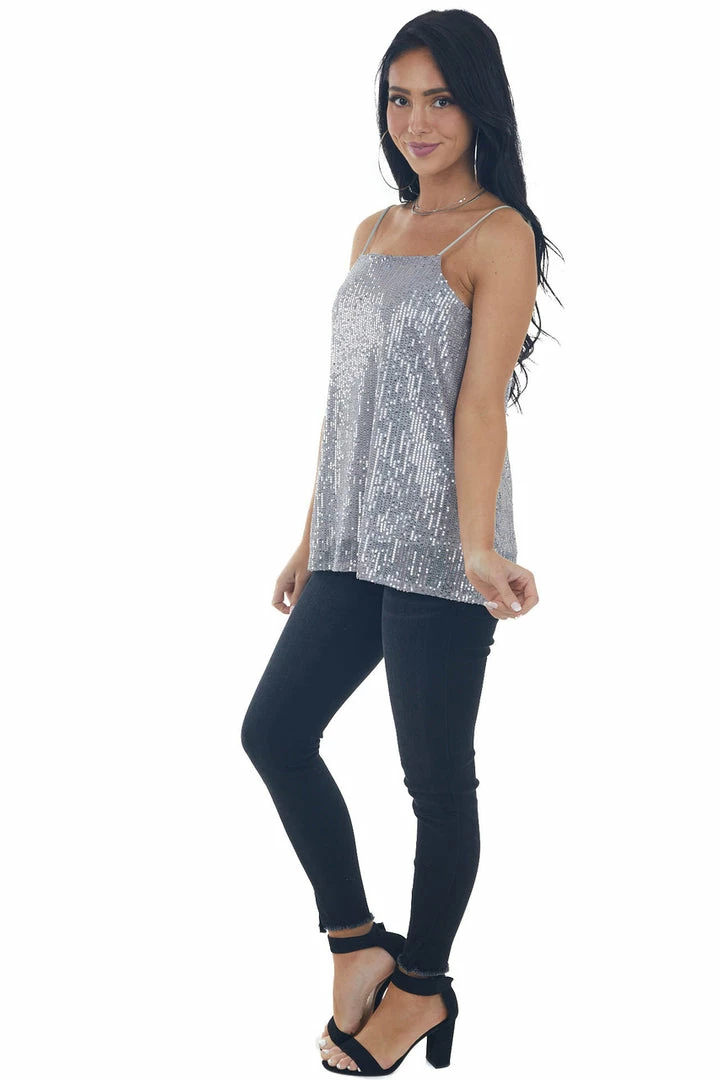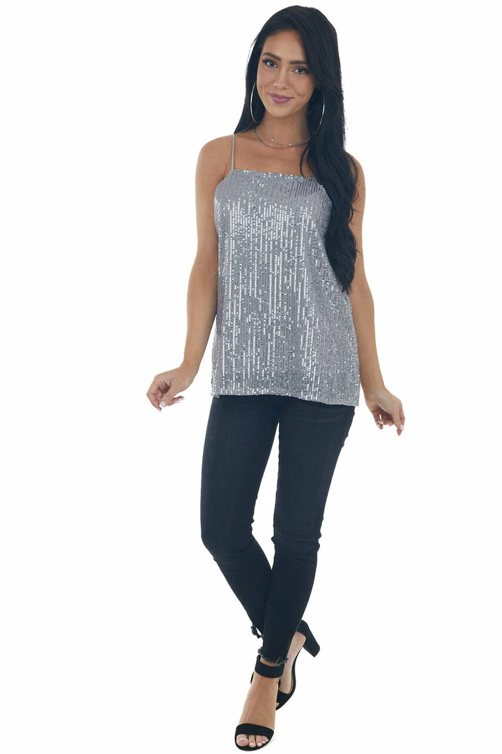 - Steel Sequin Square Neck Adjustable Strap Tank