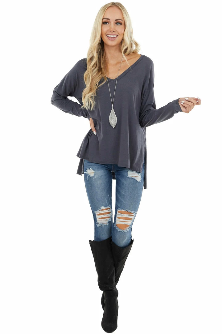 - Stormy Grey Long Sleeve Top with Side Slit Detail