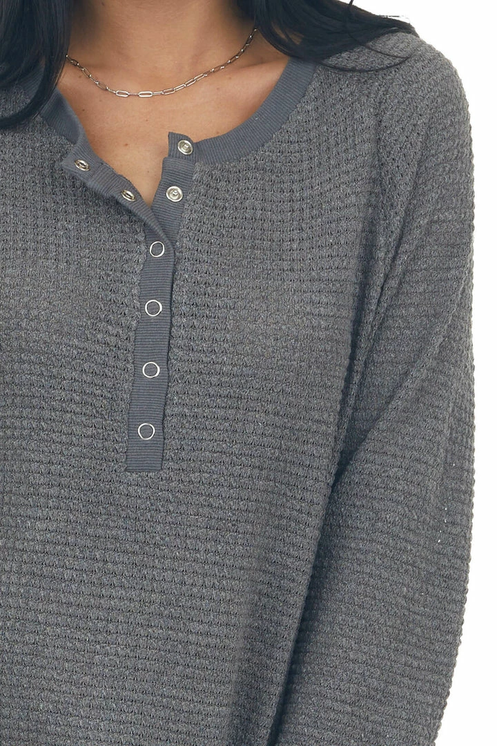- Charcoal Snap Button Side Slit Waffle Knit Top