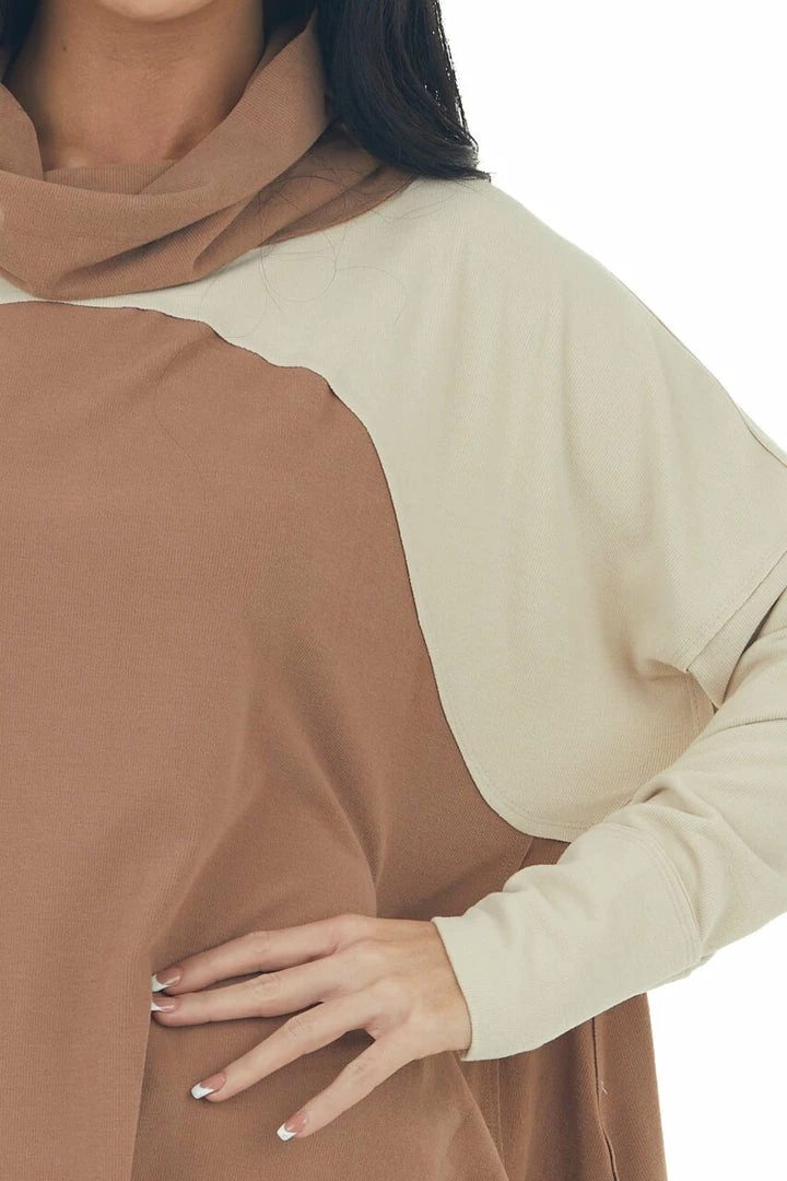 - Cognac Colorblock Cowl Neck Soft Wide Fit Top