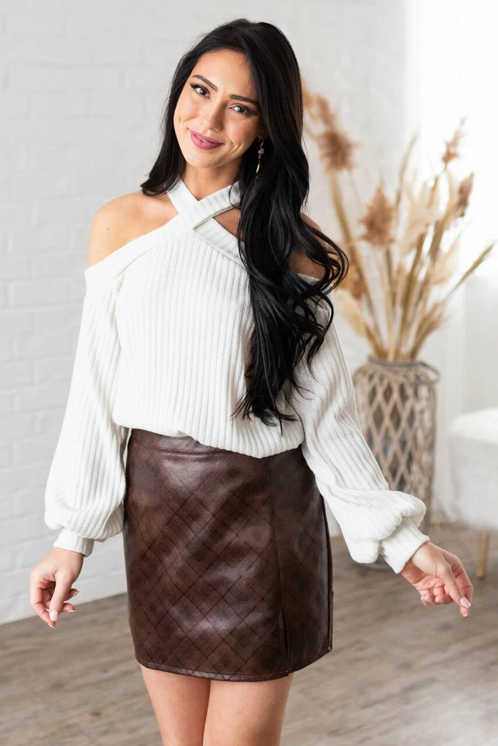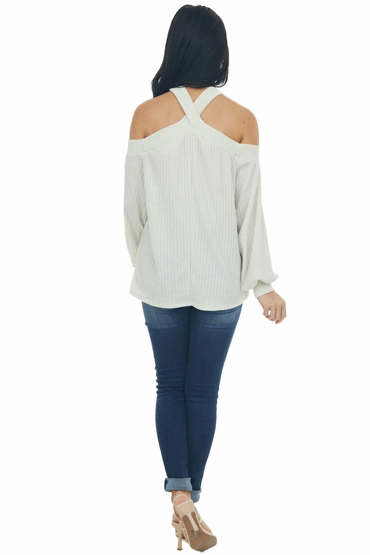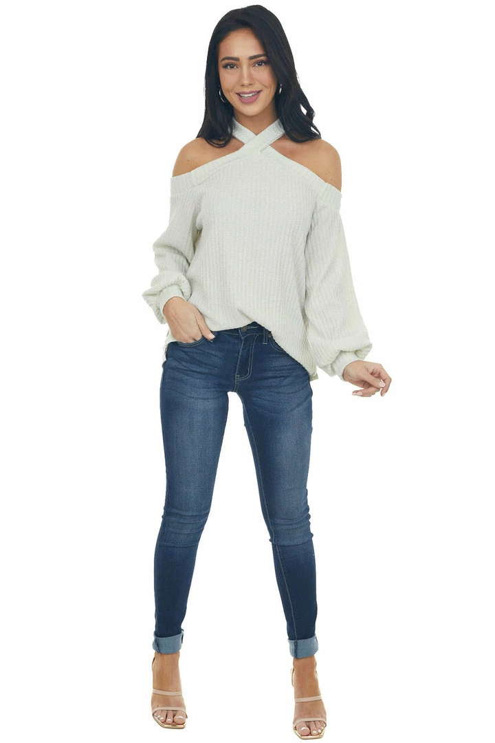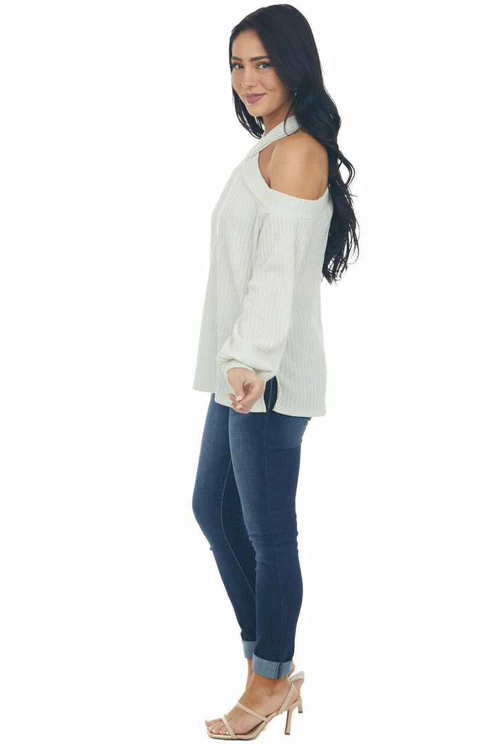 - Cream and Silver metallic threading stretchy ribbed knit self