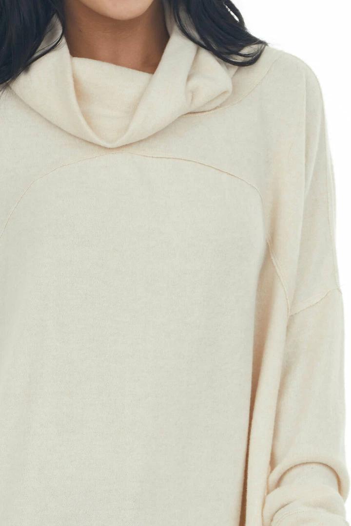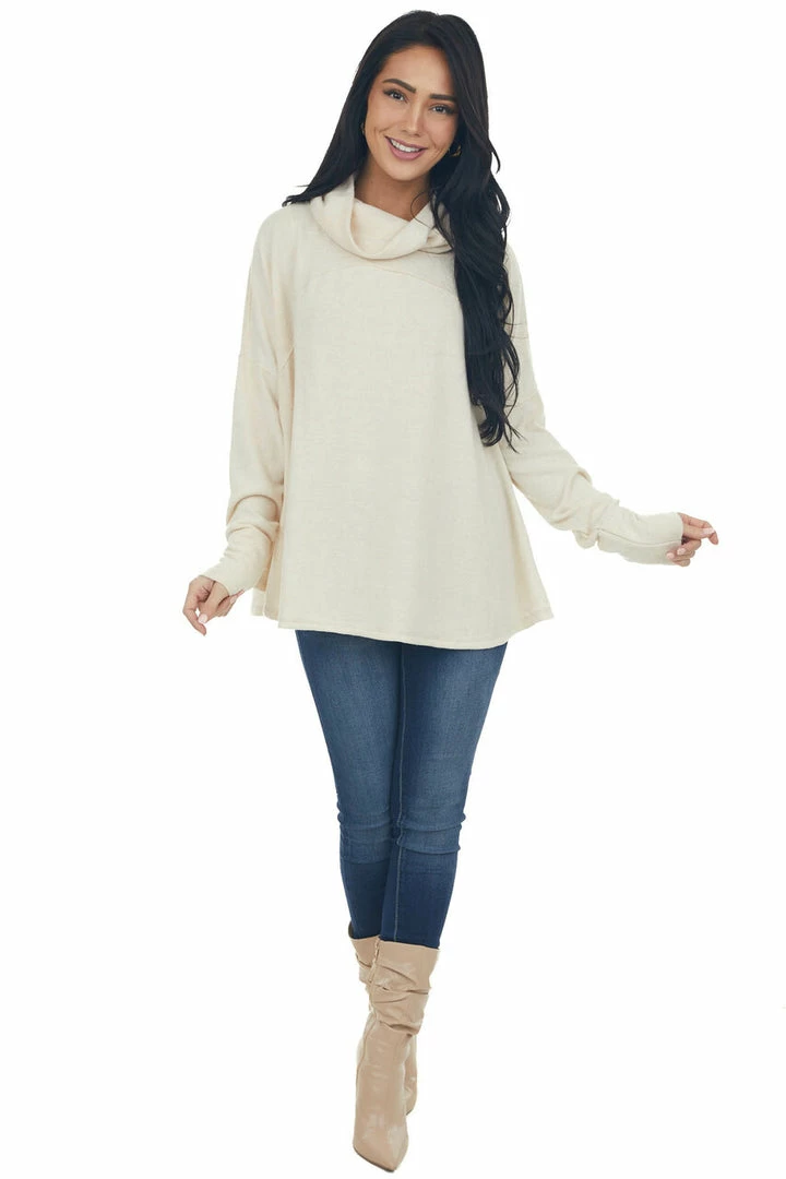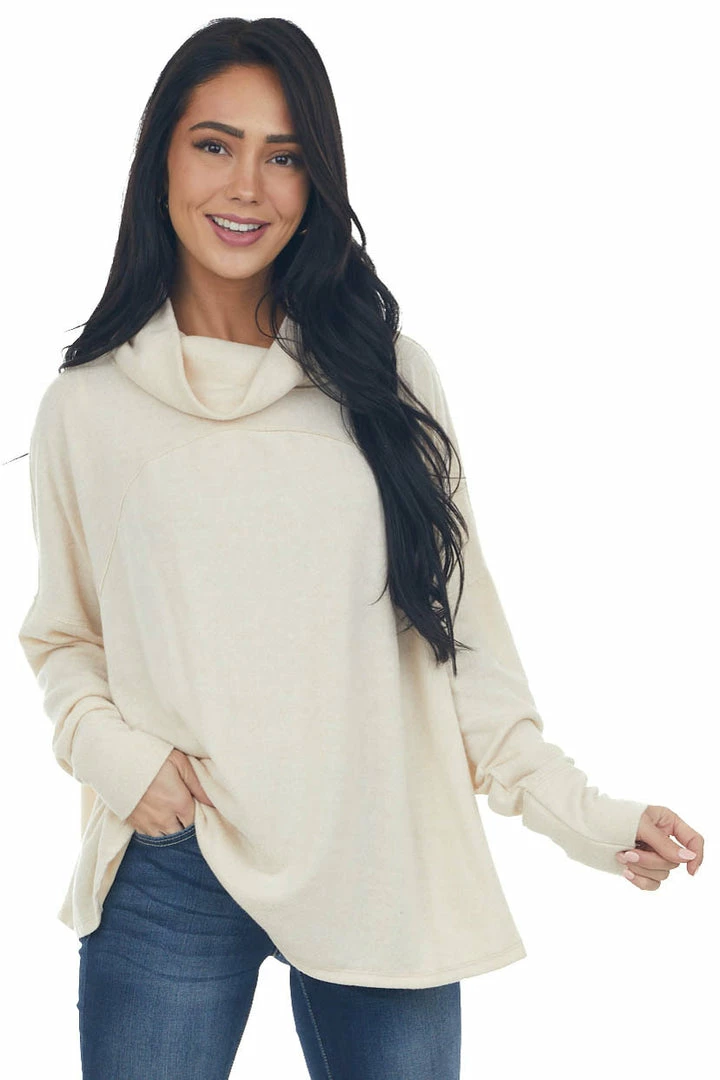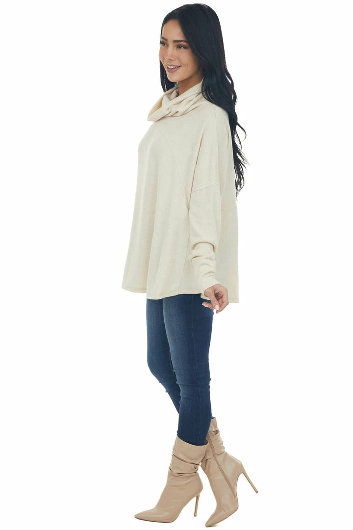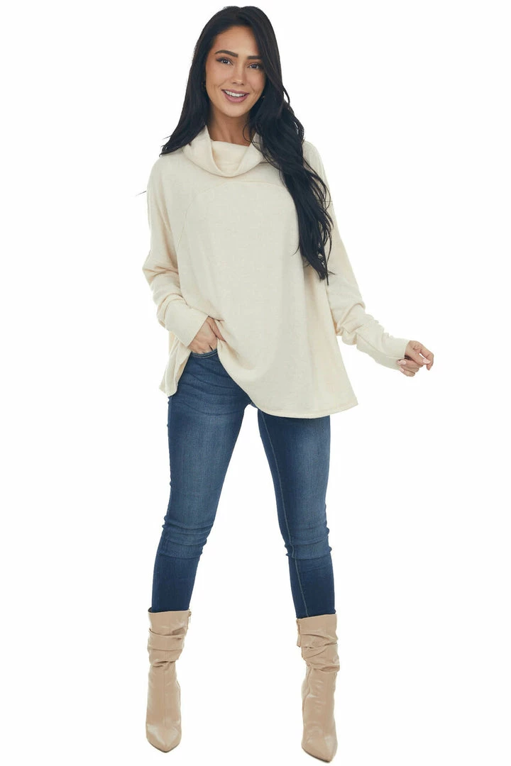 - Cream Wide Fit Cowl Neck Brushed Knit Top