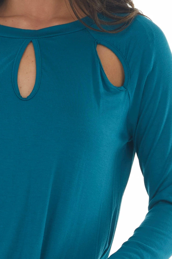 - Deep Teal Long Sleeve Triple Chest Keyhole Top