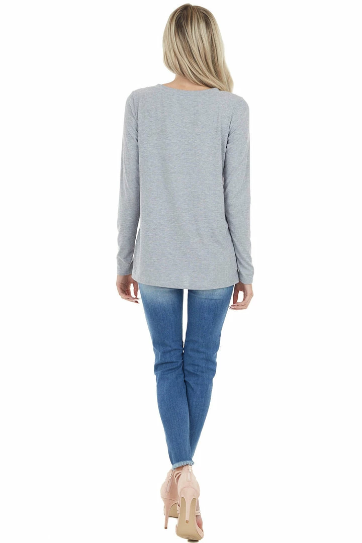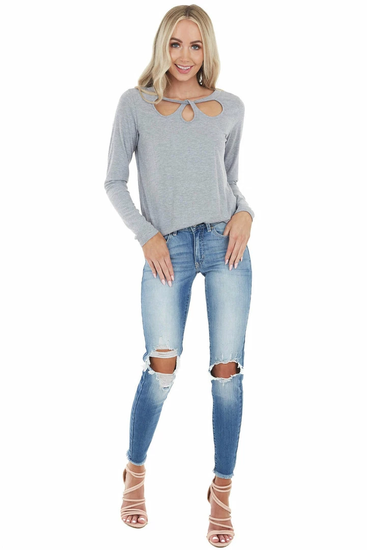 - Dove Grey Long Sleeve Textured Knit Top with Chest Cutout