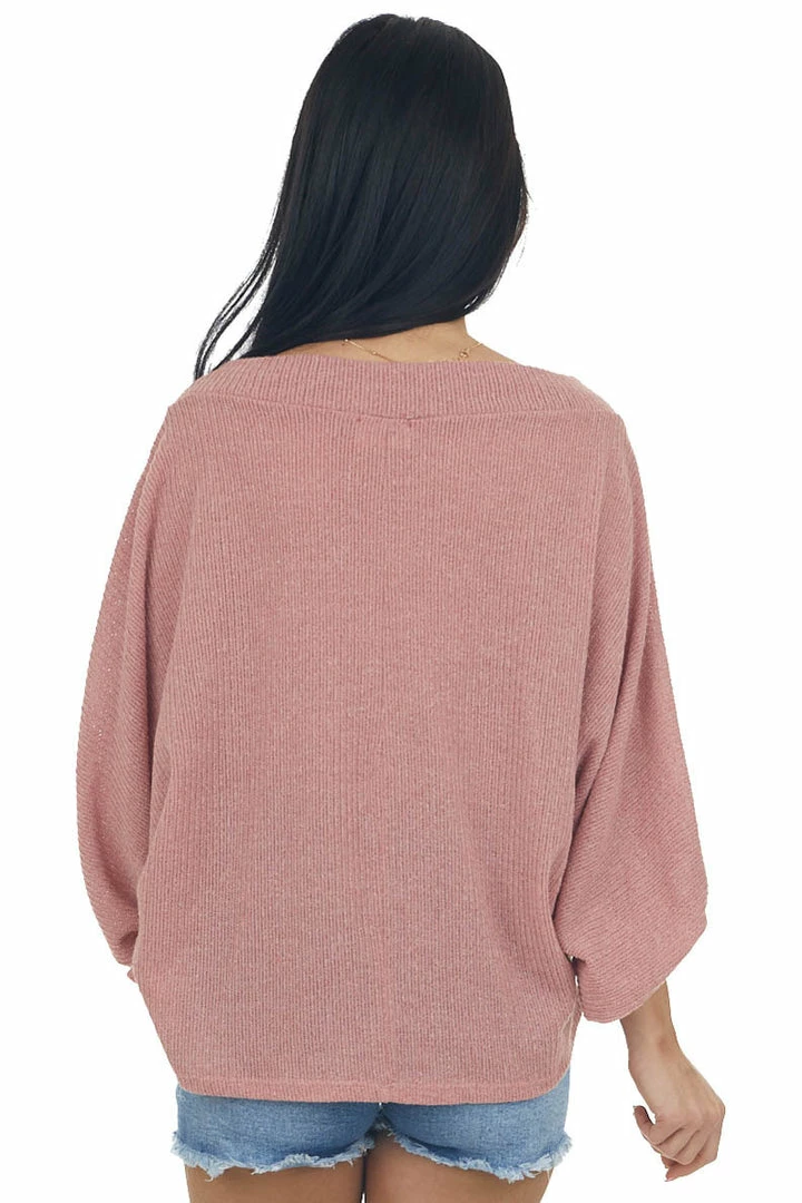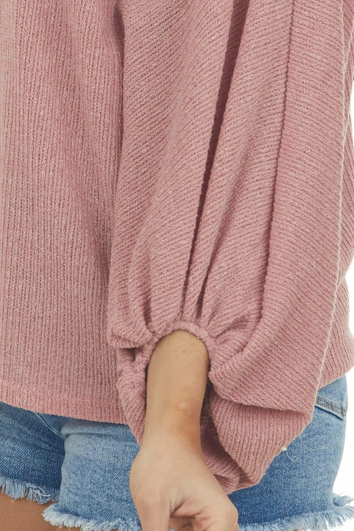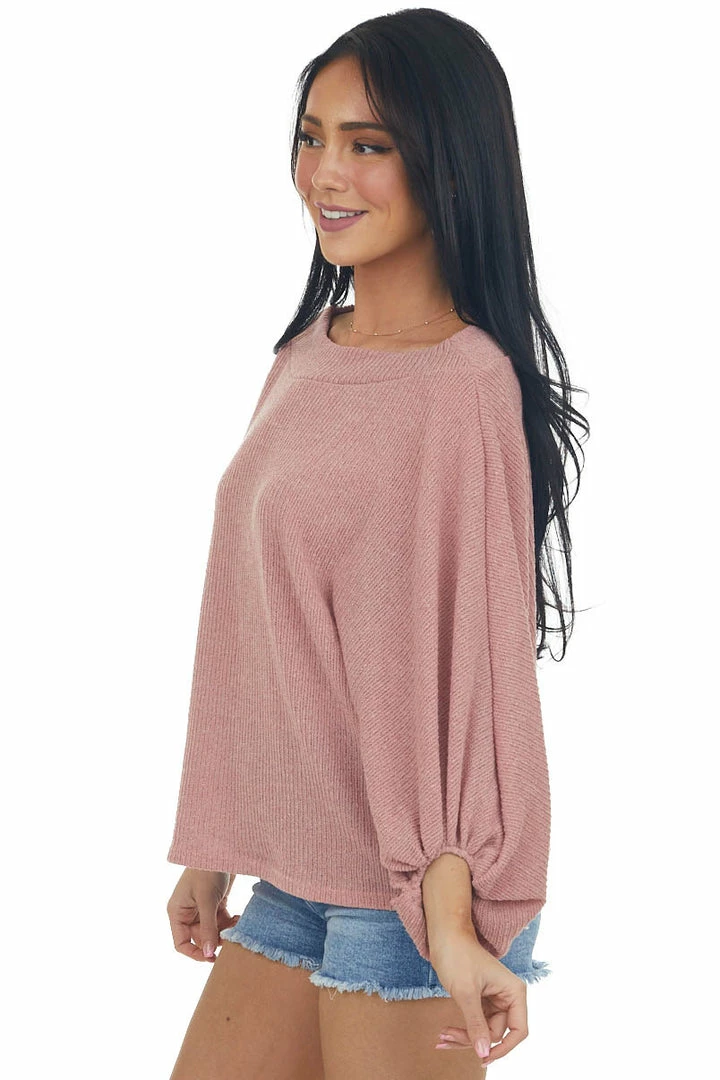 - Dusty Coral Boat Neck Bubble Sleeve Knit Top