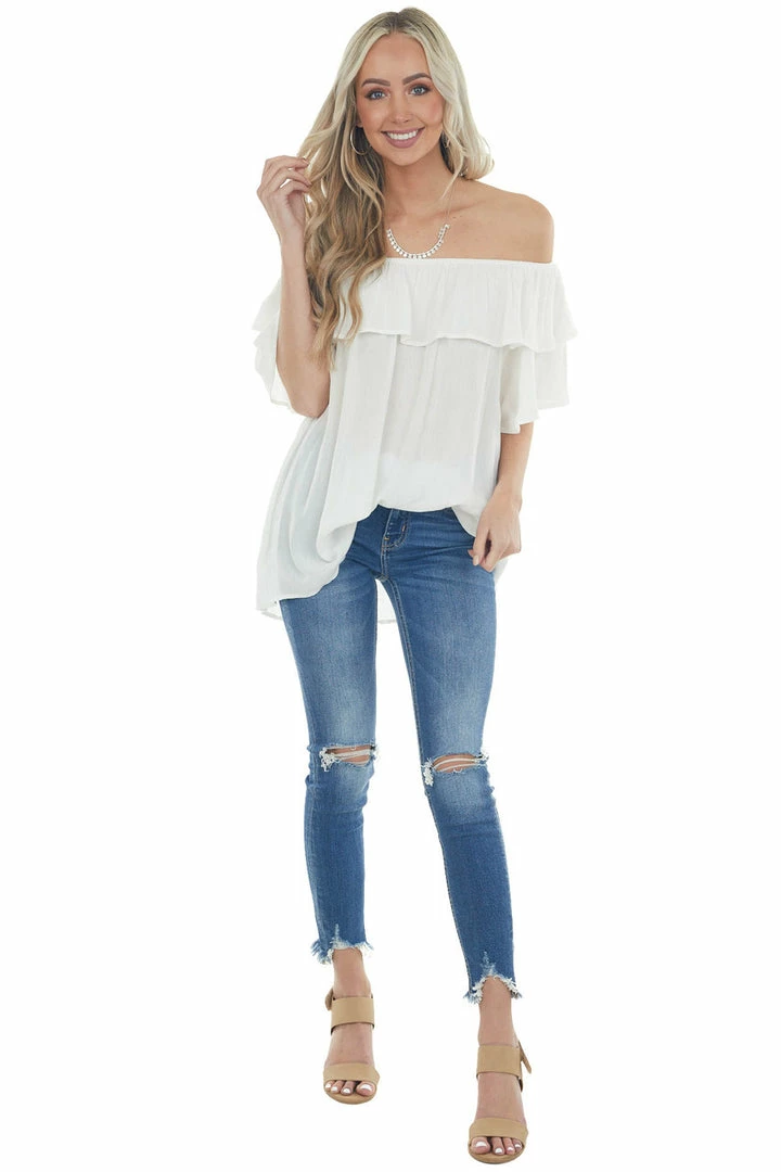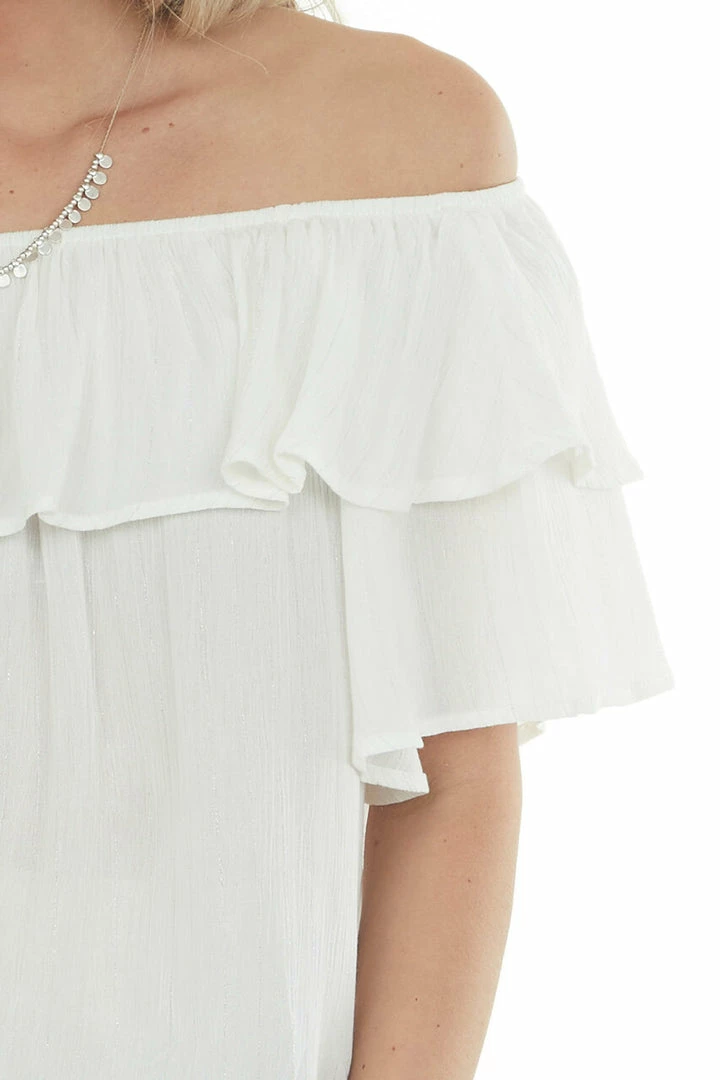 - Ivory Off the Shoulder Metallic Thread Blouse