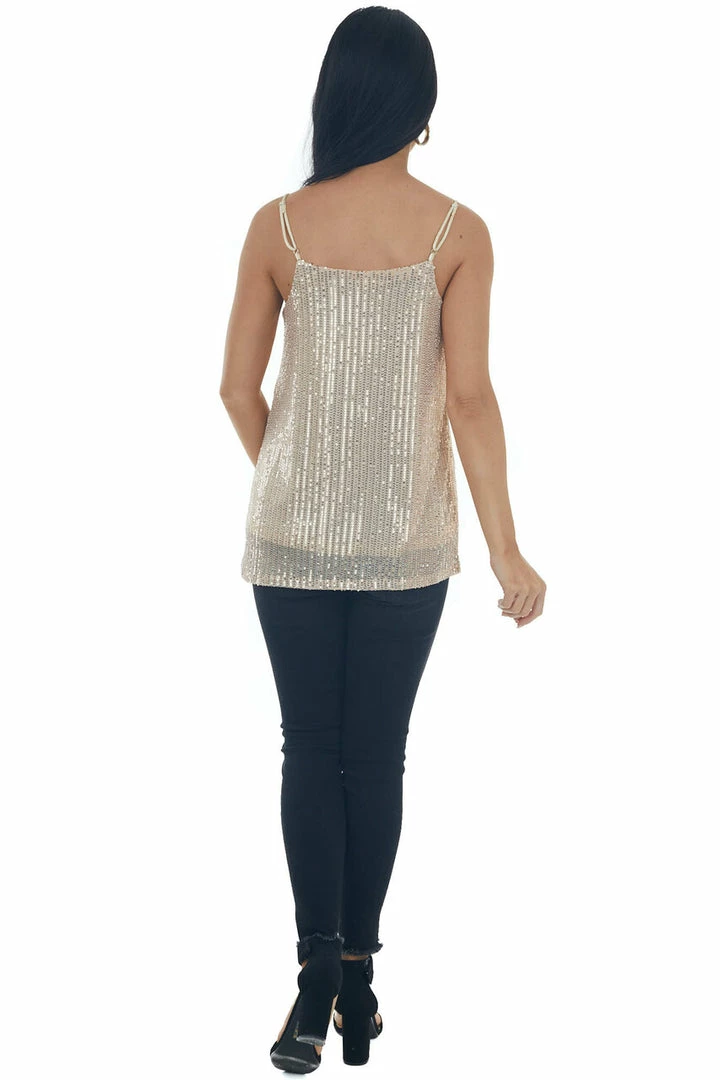 - Nude Sequin Square Neck Adjustable Strap Tank