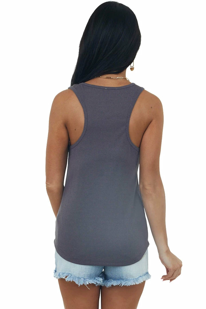 - Quartz Ribbed Scoop Neck Thread Patch Tank Top