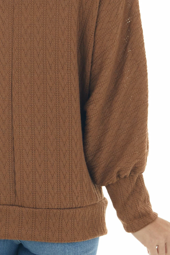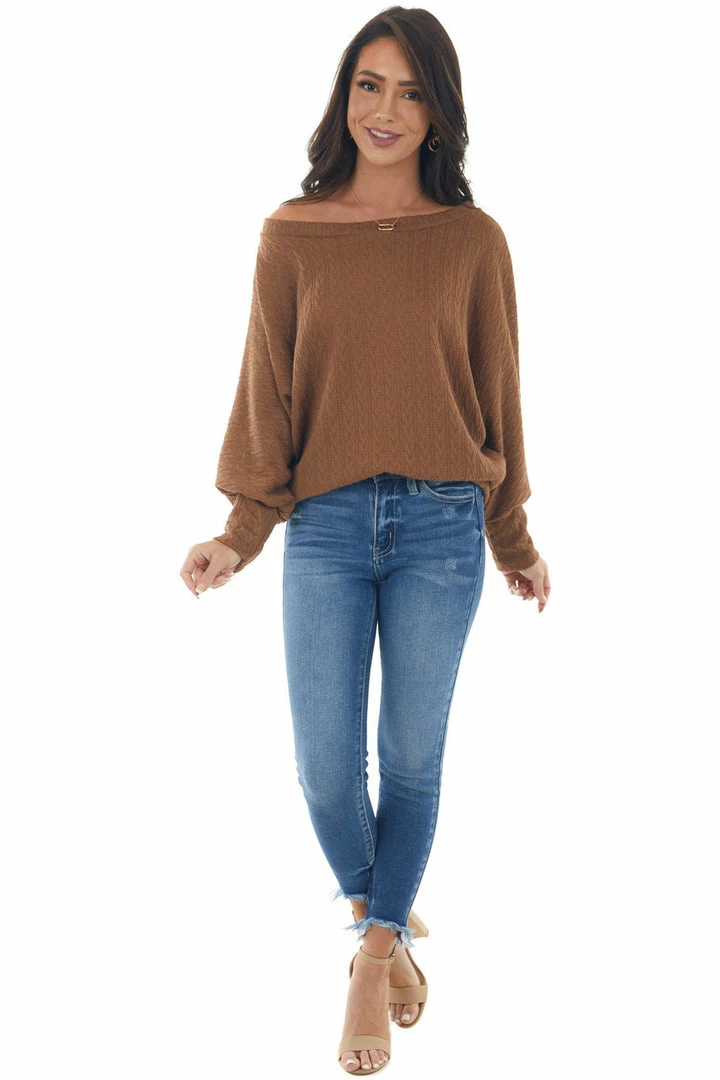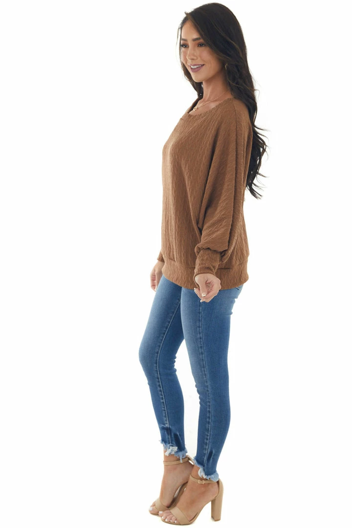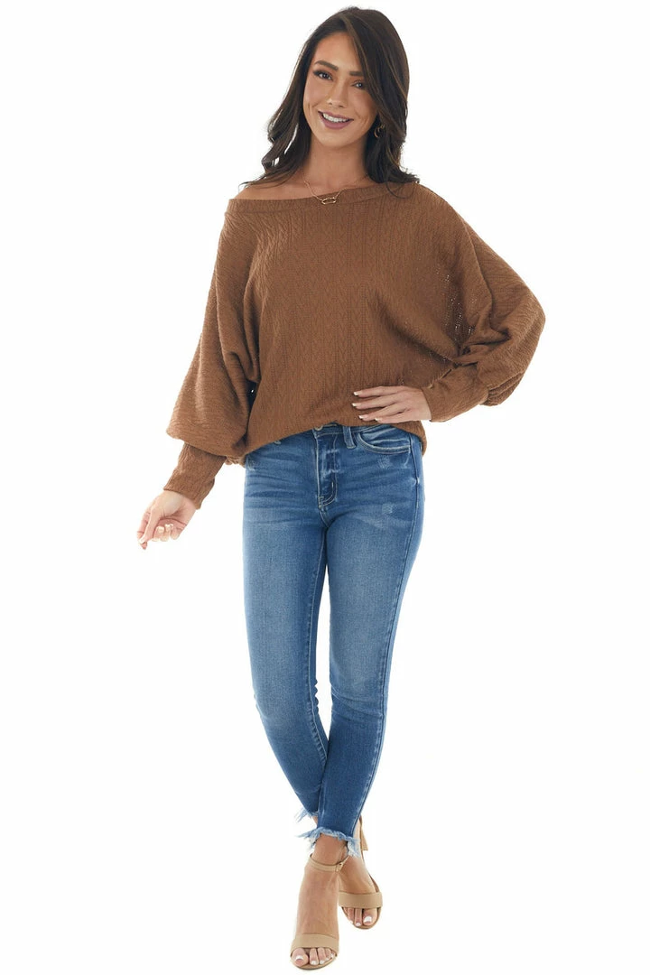 - Sepia Textured Knit Banded Dolman Sleeve Top