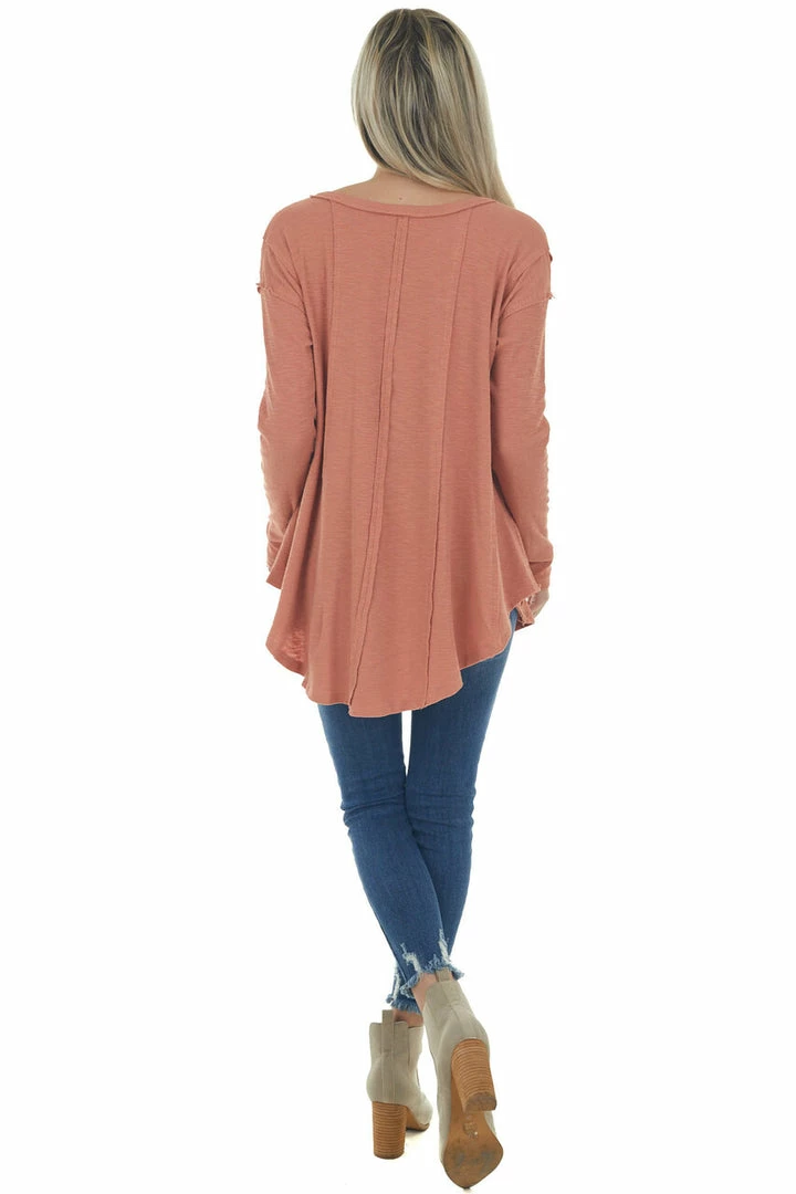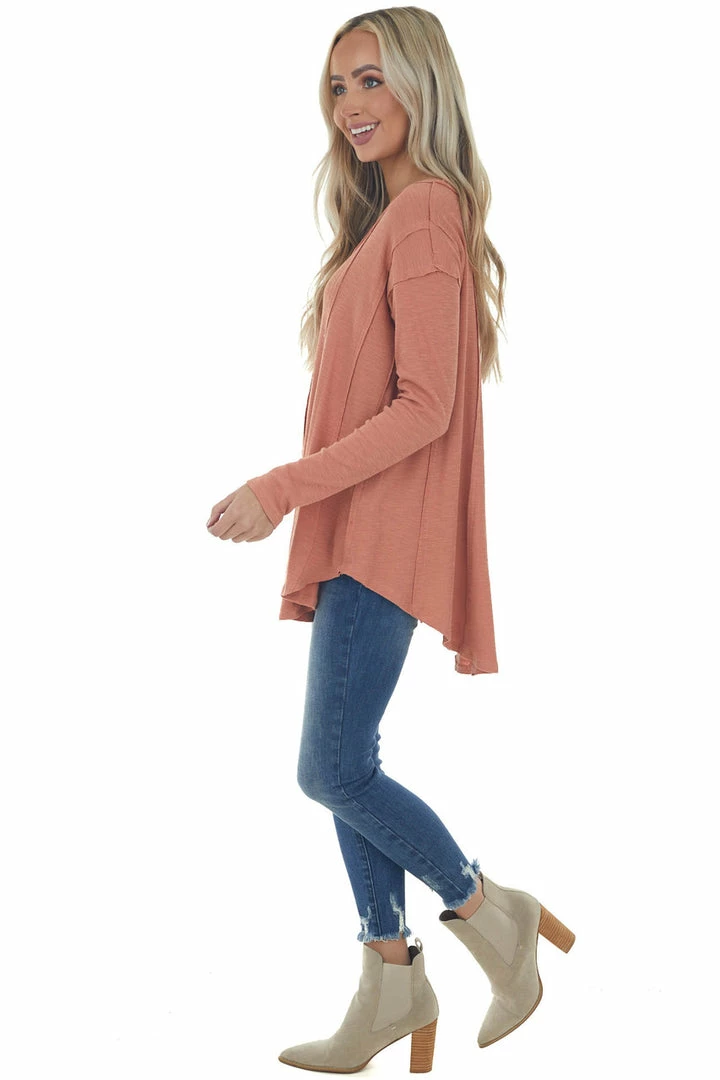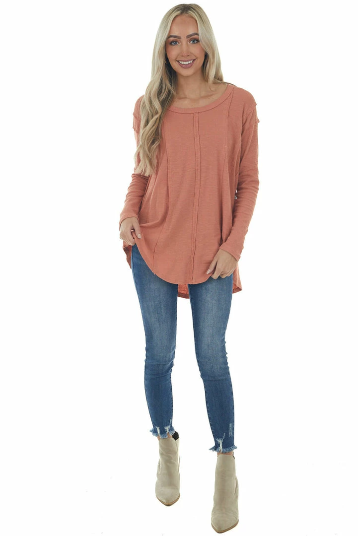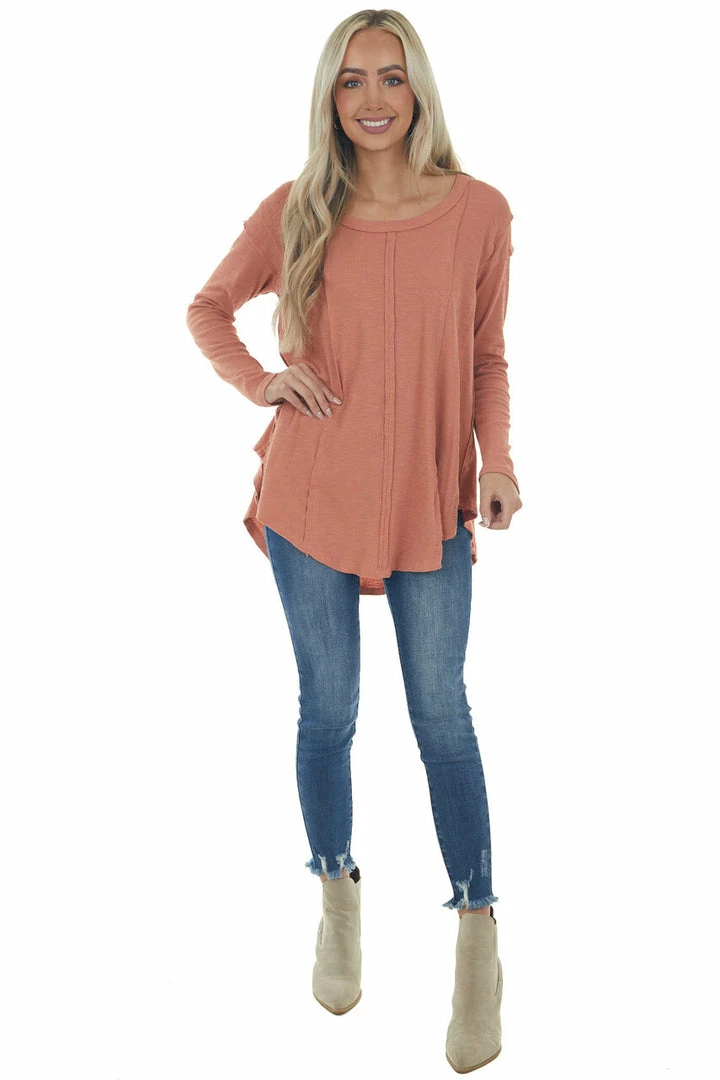 - Terracotta Scoop Neckline Rounded Hem Knit Top
