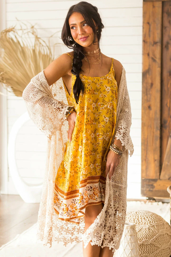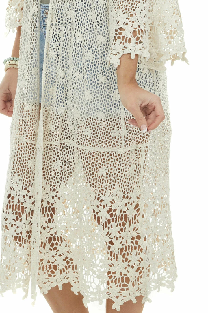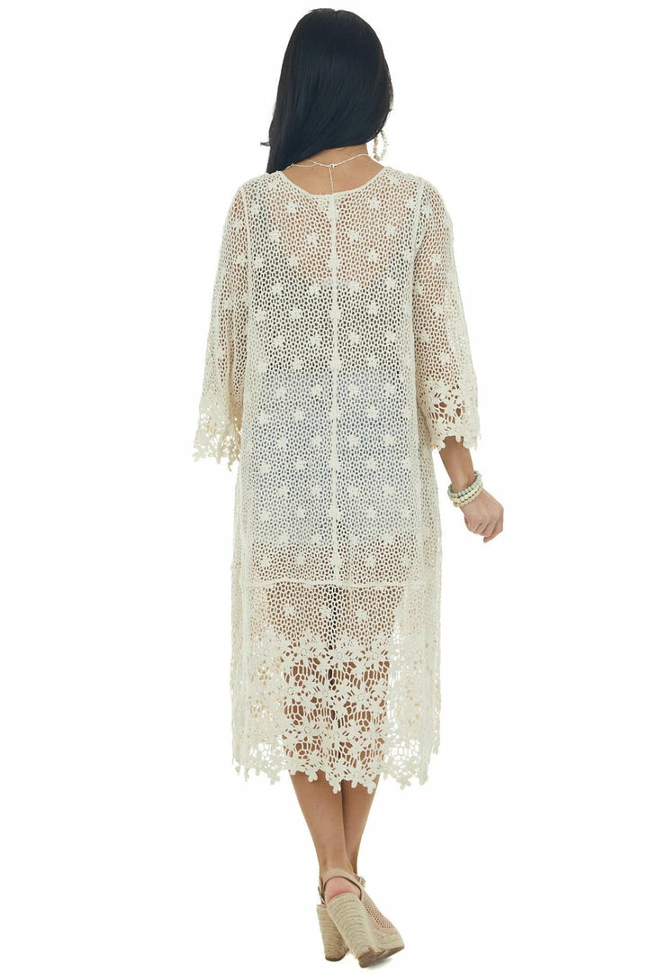 - Vanilla Open Crochet 3/4 Sleeve Duster Kimono