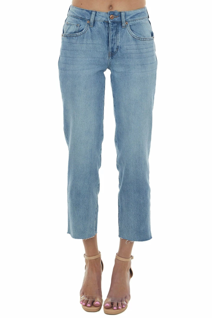 - Medium Denim Wash Button Fly Straight Ankle Jeans