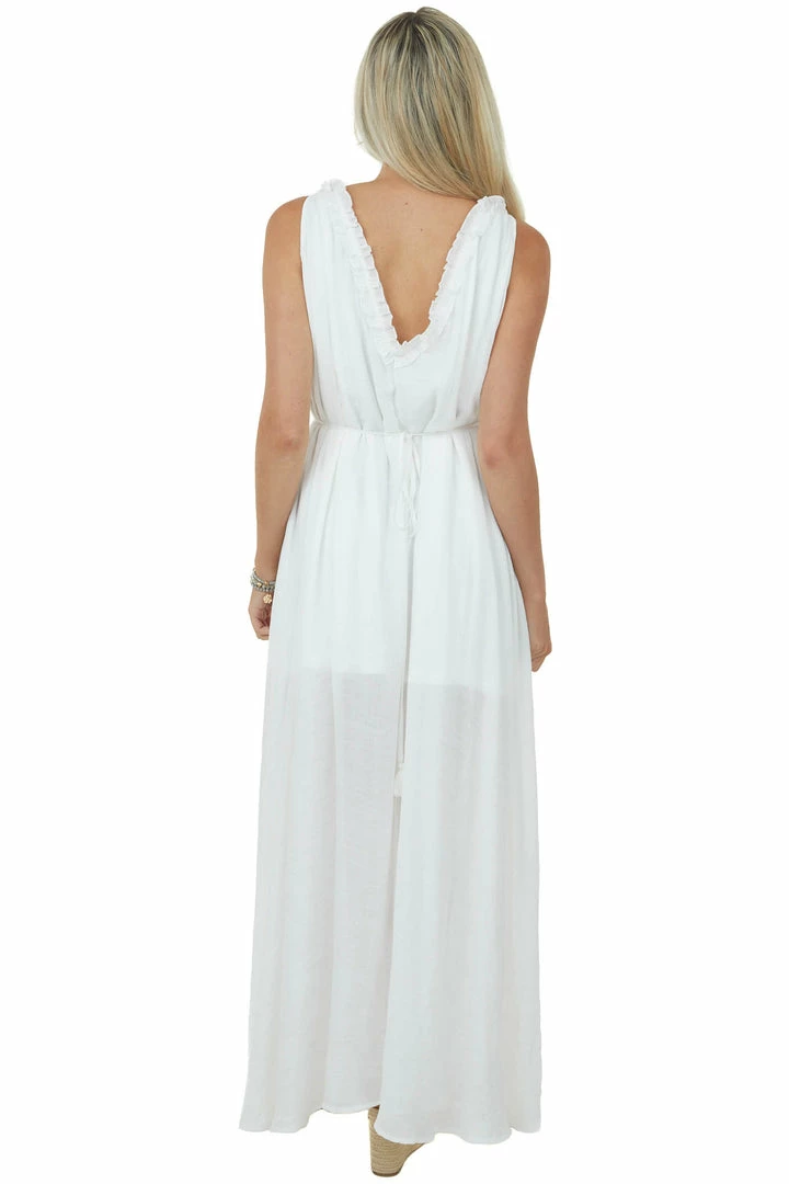 - Off White Surplice Maxi Dress with Deep Side Slit