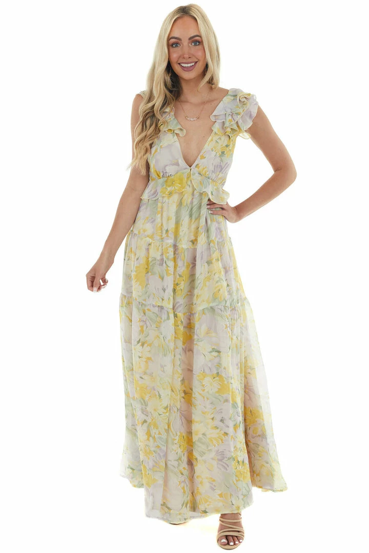 - Floral print in shades of Pastel Yellow, Ivory, Light Mauve, Pastel Forest Green and Mustard