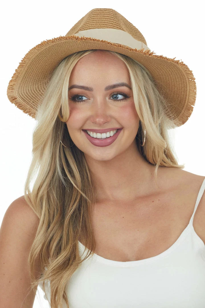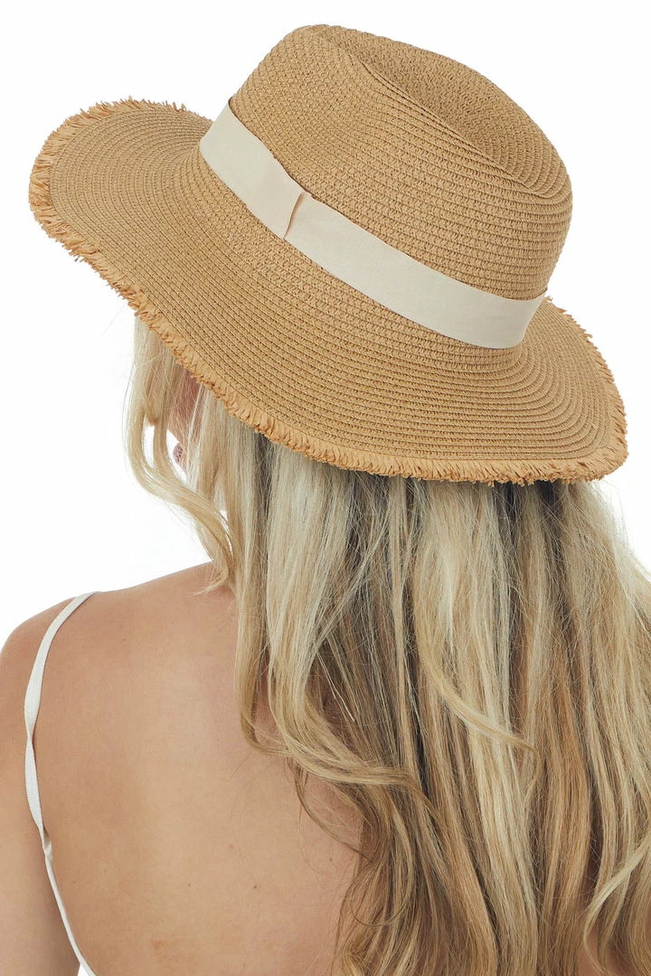 - Brown Sugar Frayed Edge Ribbon Panama Straw Hat