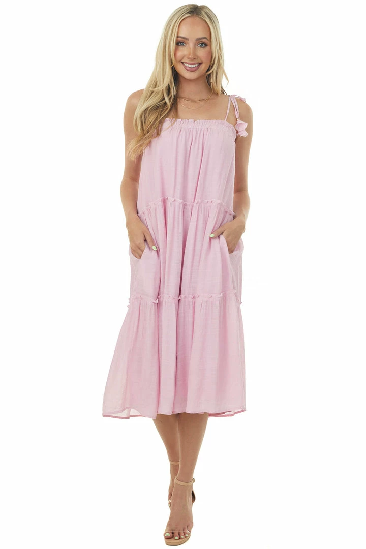 - Cherry Blossom Sleeveless Tiered Midi Dress