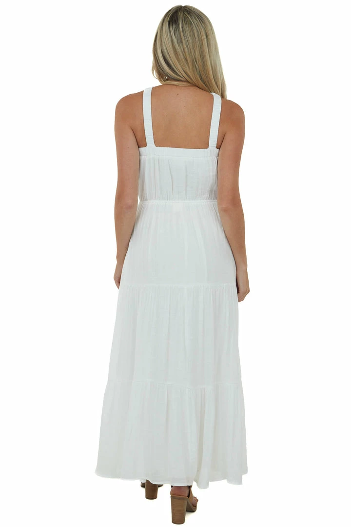 - Ivory Elastic Halter Neck Tiered Maxi Dress