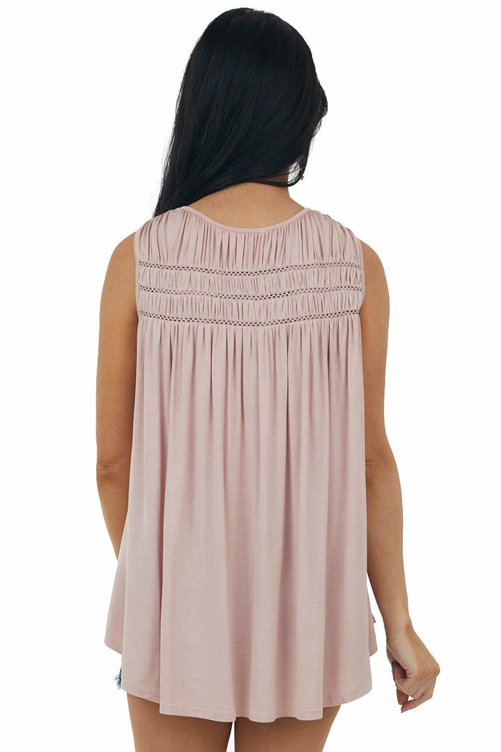 - Dusty Blush Textured Yoke Swing Knit Tank Top