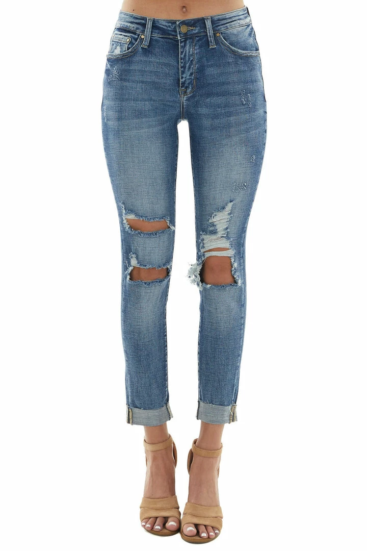 - Medium Mid Rise Relaxed Fit Distressed Jeans