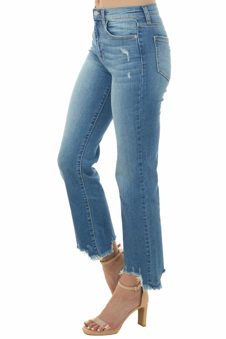 - Medium Wash High Rise Frayed Hem Straight Jeans