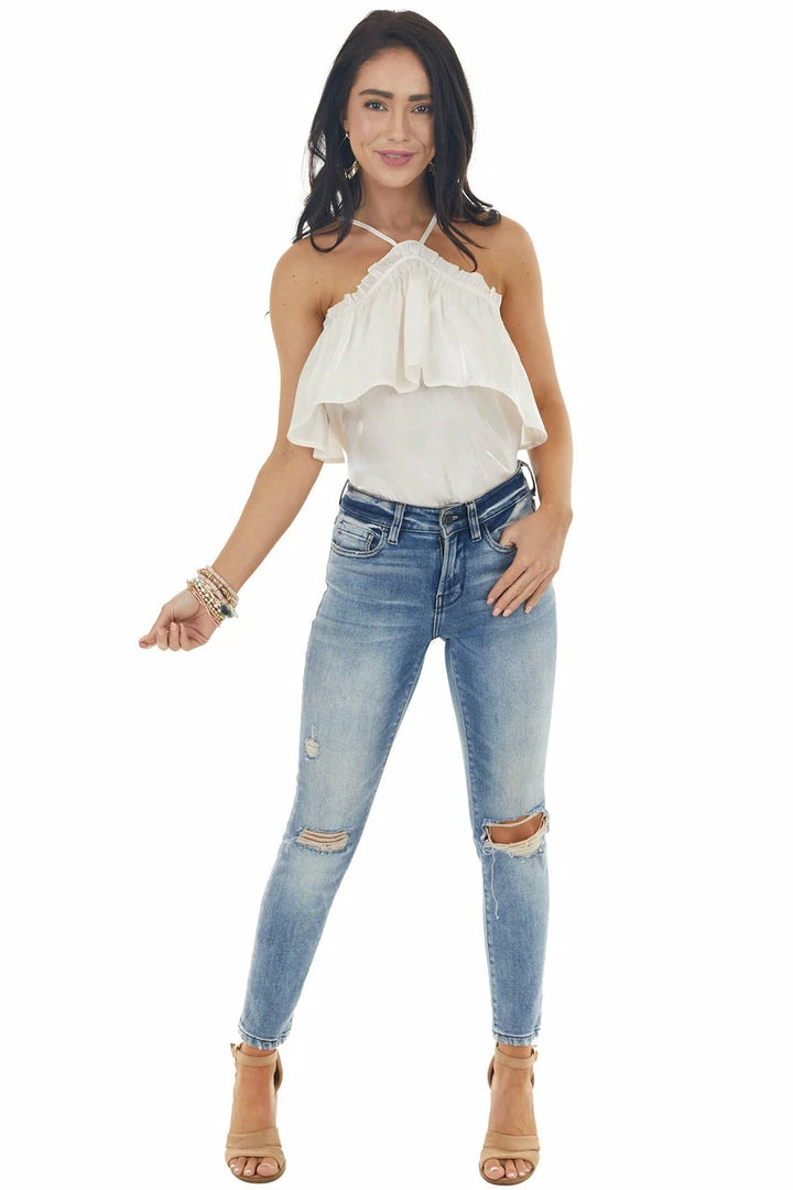 - Halter with ruffle details