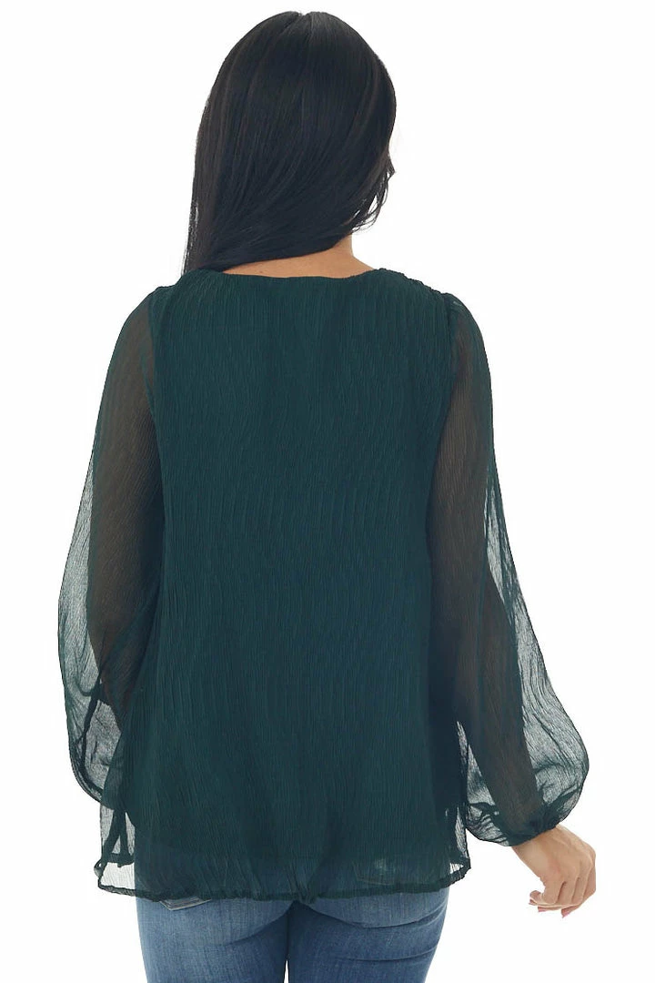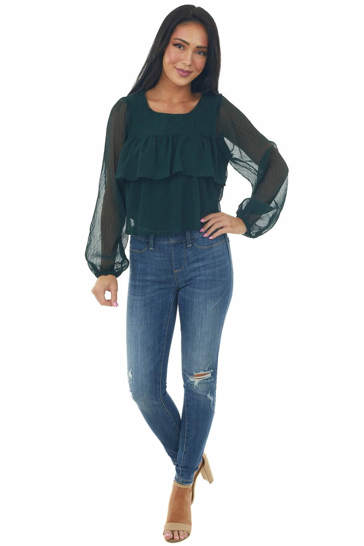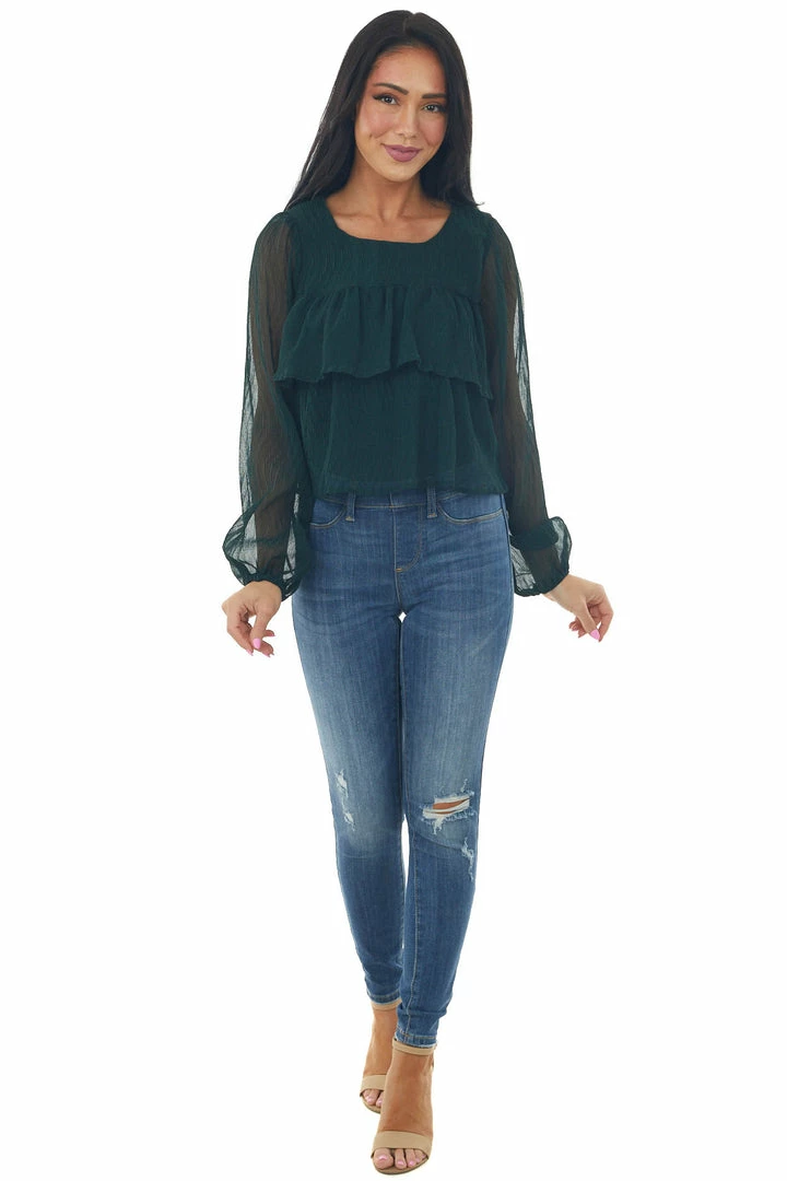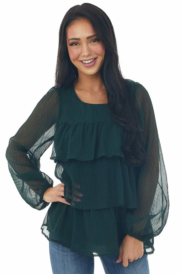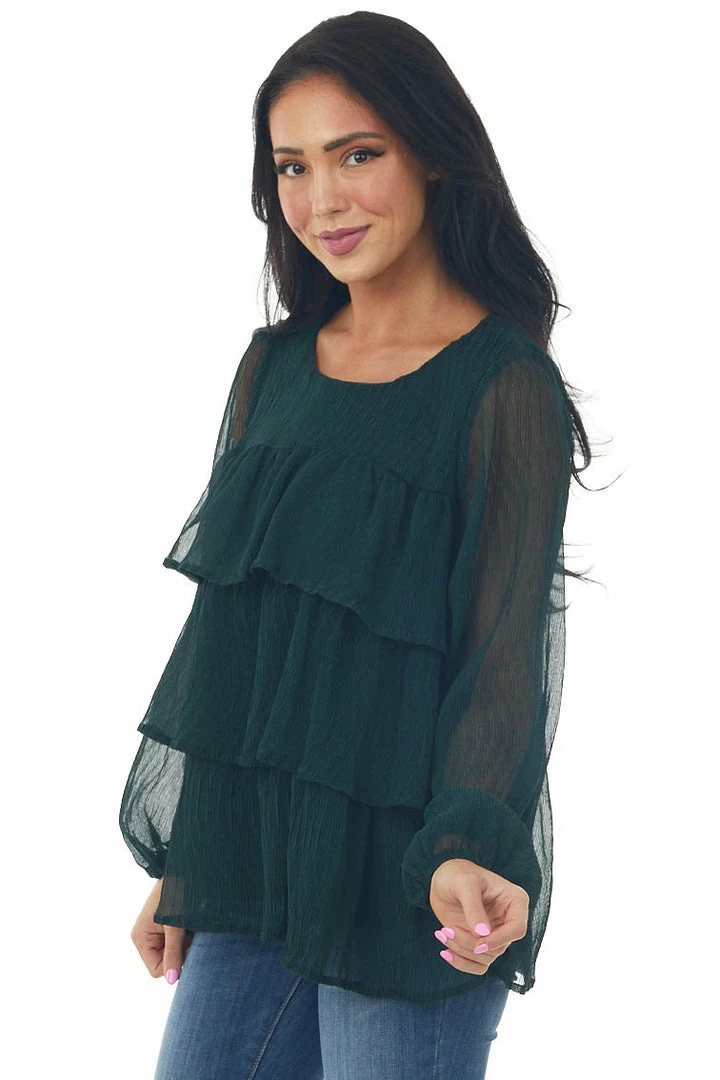 - Forest Green Textured Tiered Babydoll Blouse