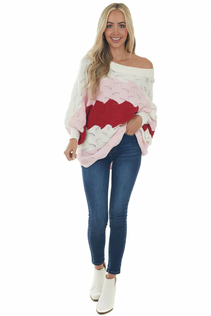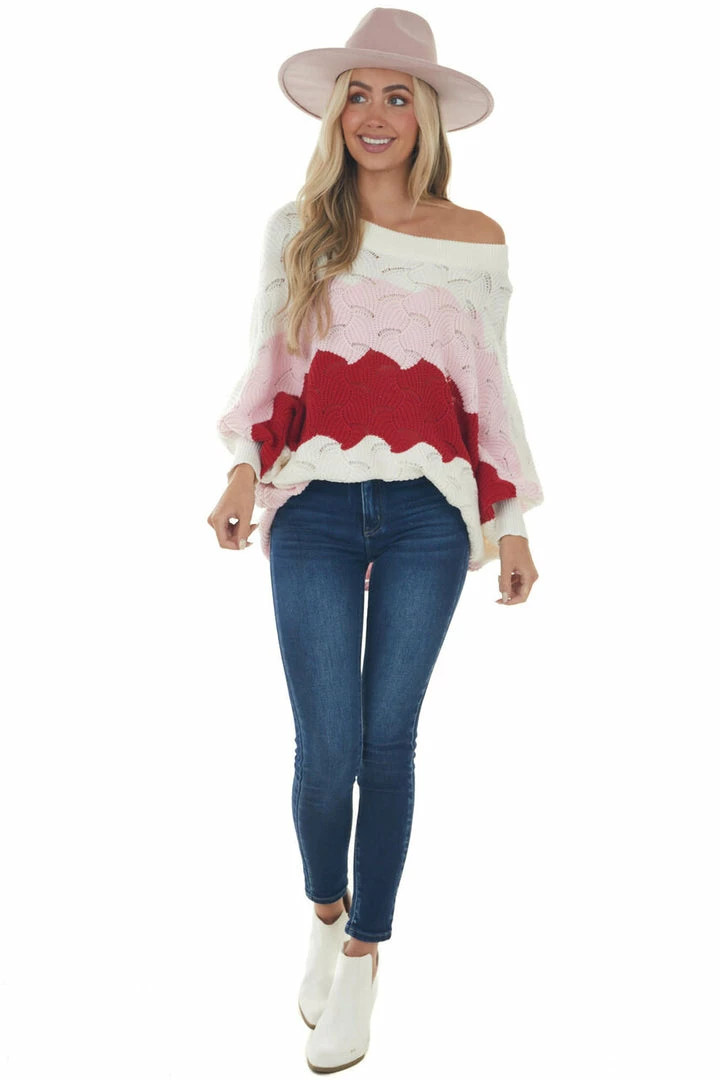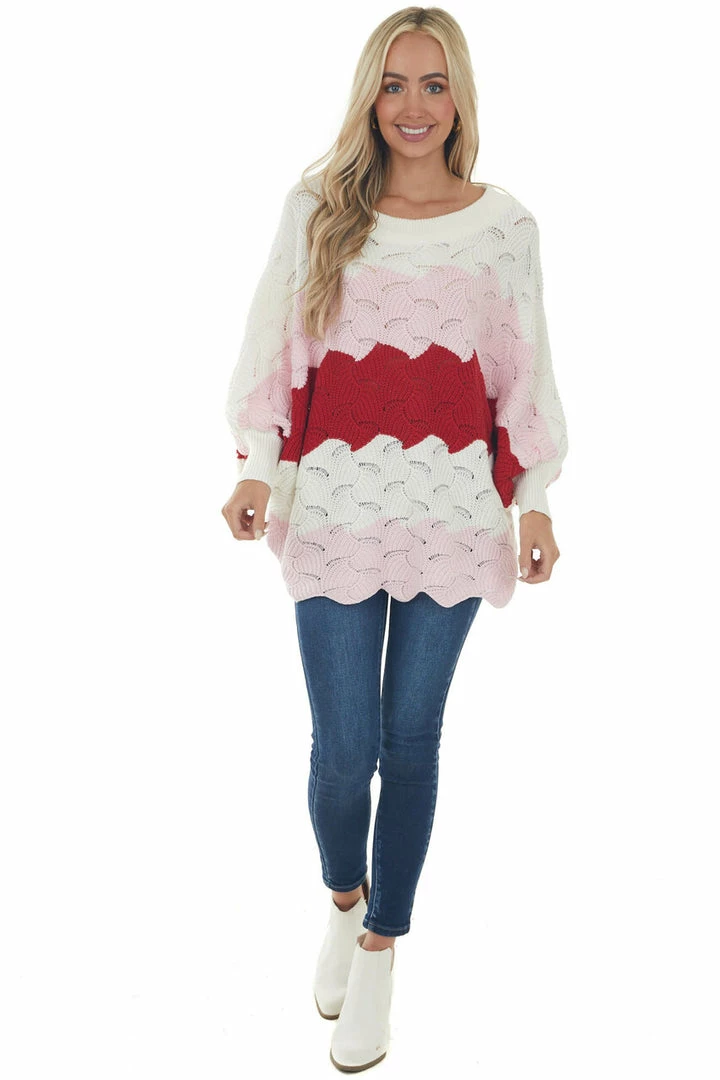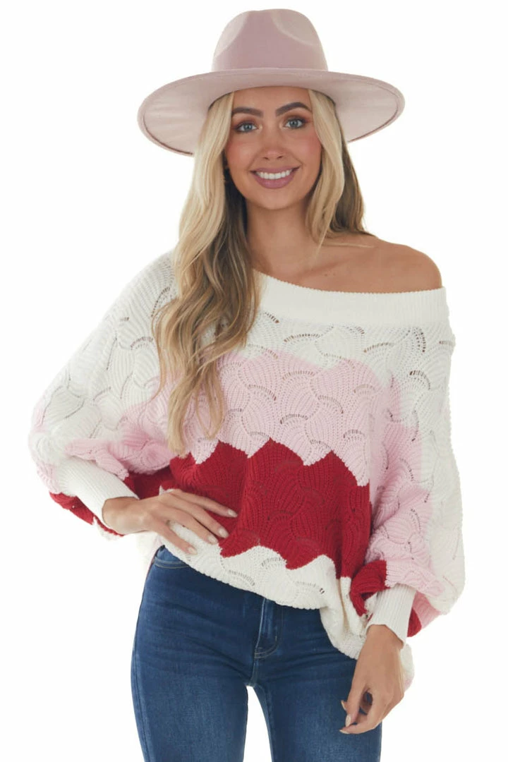- Multicolored colorblock semi-stretchy Pointelle knit self