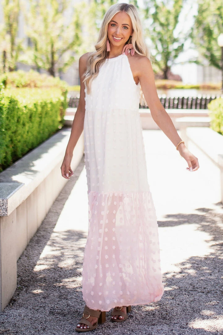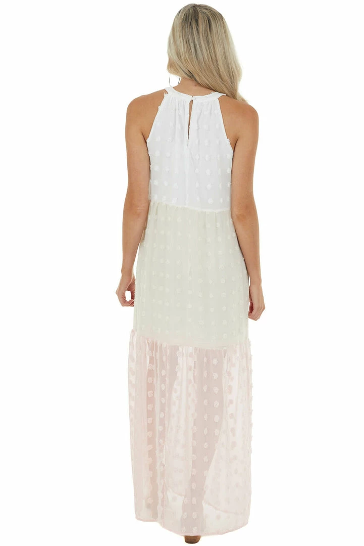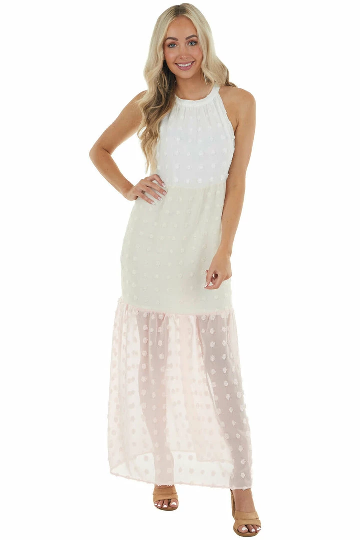 - Ivory Colorblock Swiss Dot Maxi Dress