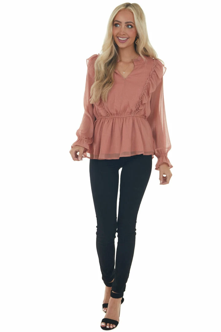 - Punch Shimmery Long Sleeve Top with Ruffles
