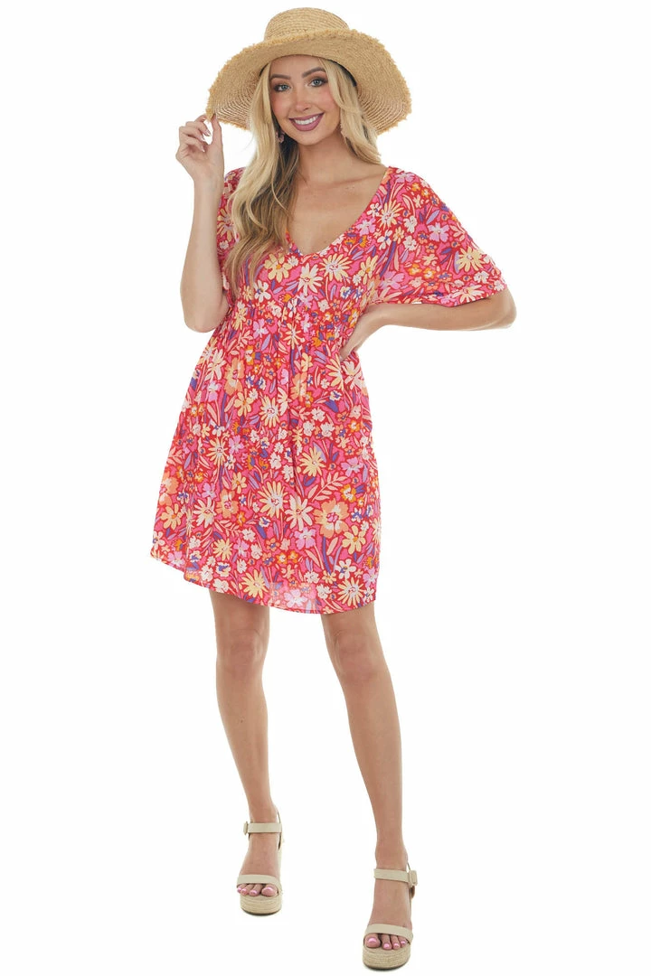 - Watermelon Colorful Floral Babydoll Flowy Mini Dress