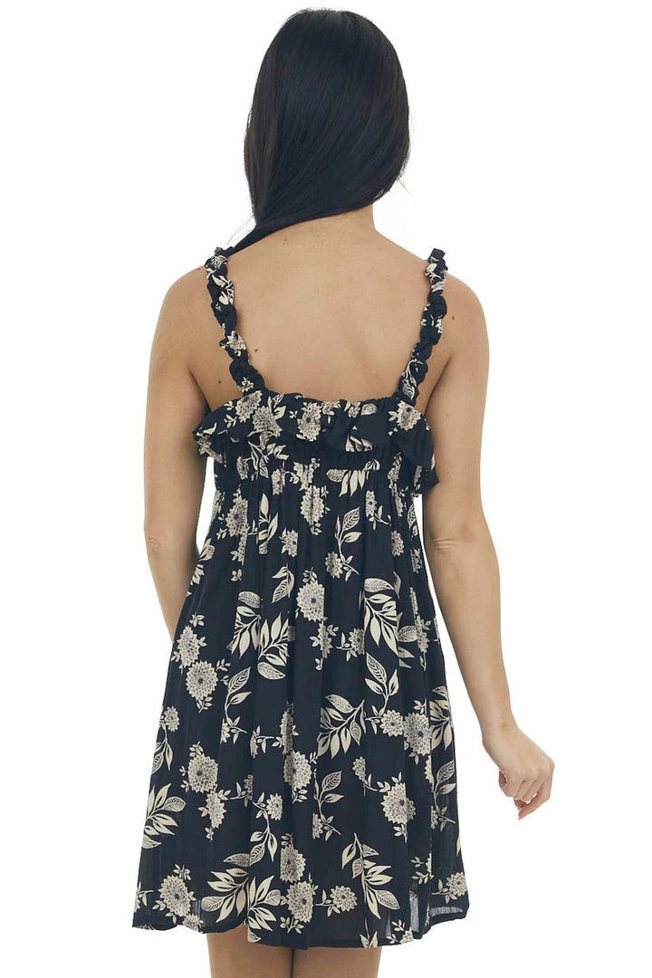 - Black Floral Babydoll Sleeveless Mini Dress