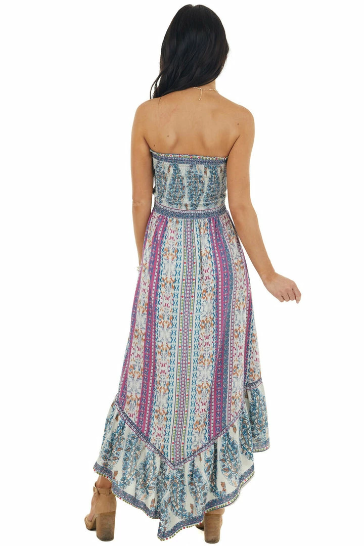 - Coconut Printed Strapless Smocked Woven Midi Dress